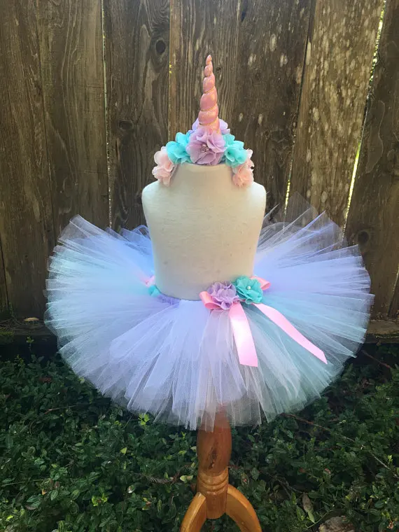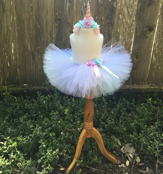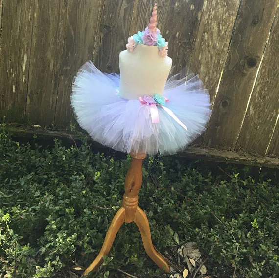 Pastel Unicorn Flower Baby Girl Tutu Skirt with Headband Children Bustle Birthday Party Tulle Tutu Skirts For Photos Halloween