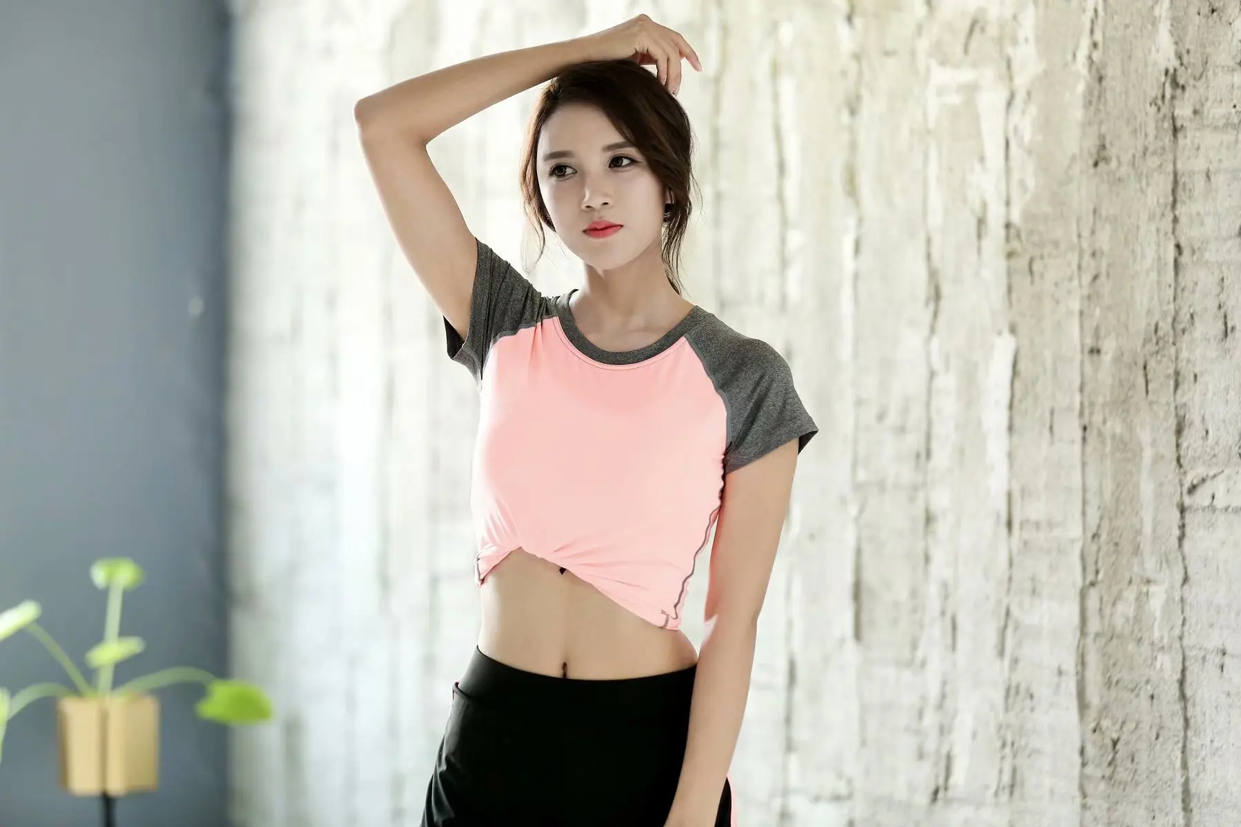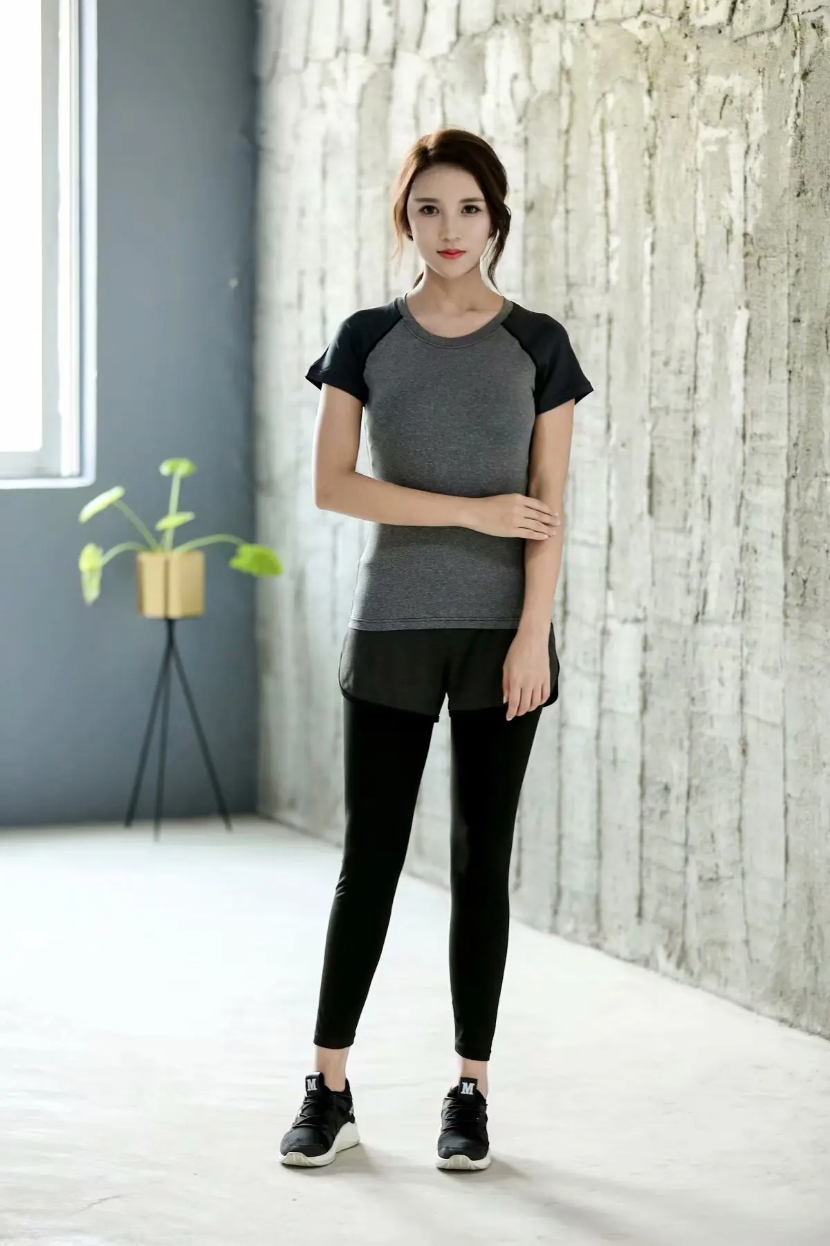 Patchwork Sport T-shirt for Women Gym Fitness Yoga Shirts Breathable Elastic Quick Dry Sweat Yoga Running Tops Exercises Clothes