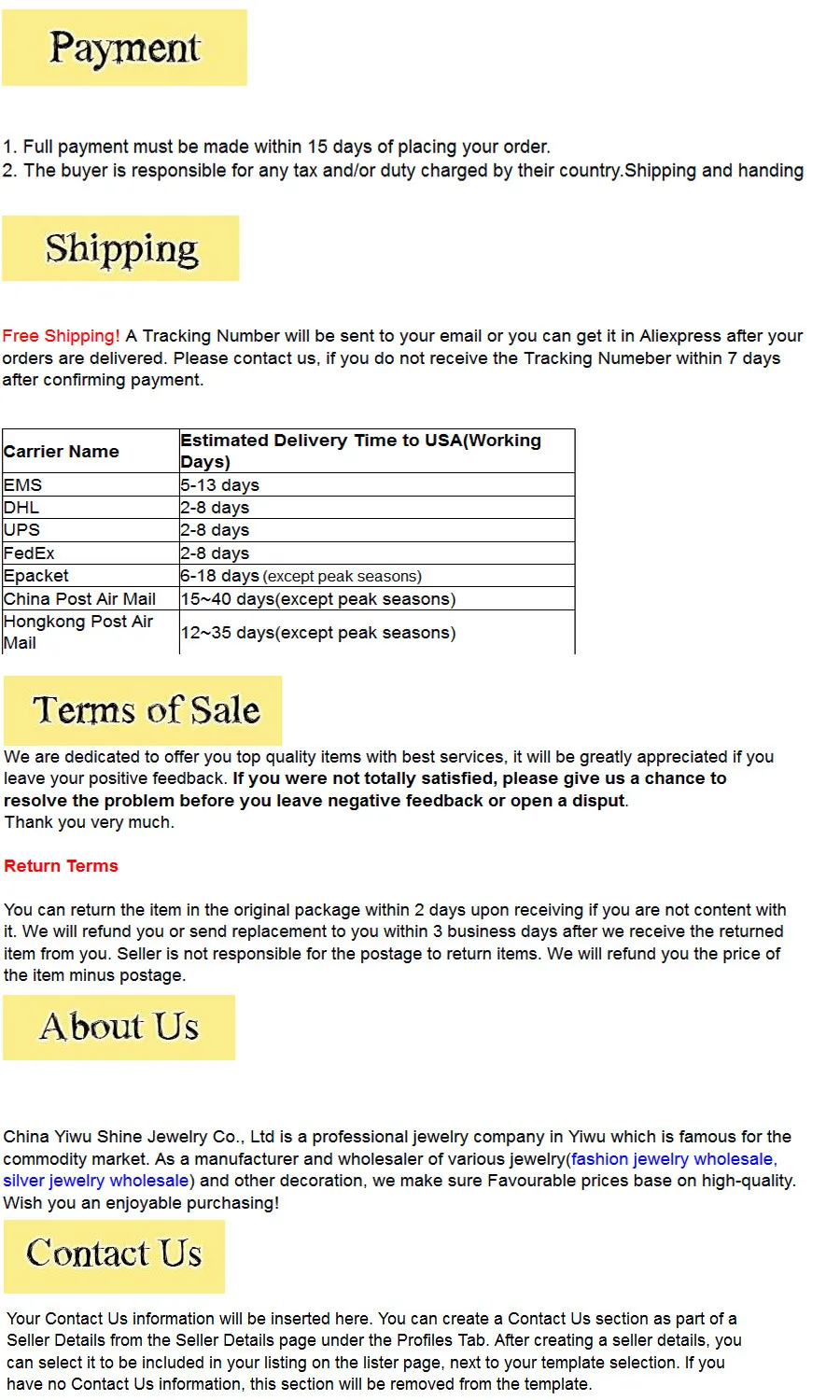 *You can submit refund requests within 15 days after the guaranteed period for delivery (45 days) has expired. You can do it by sending a message on Contact Us page
