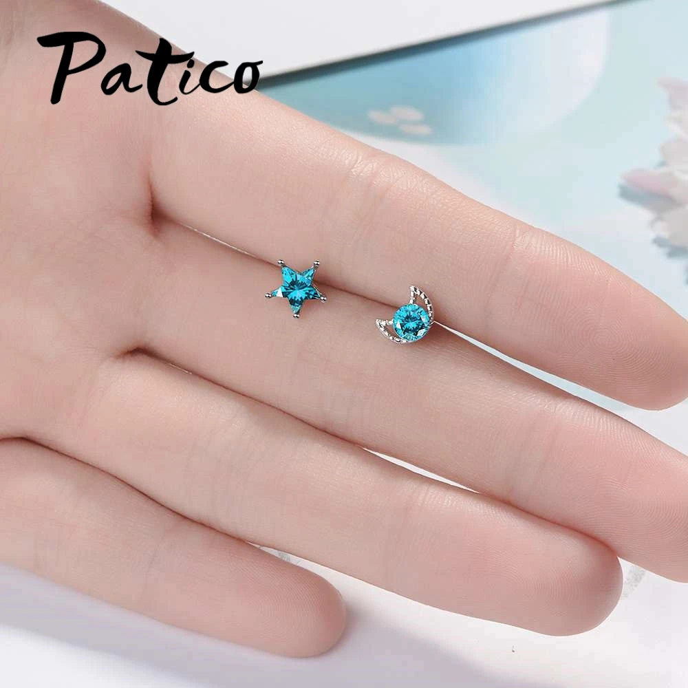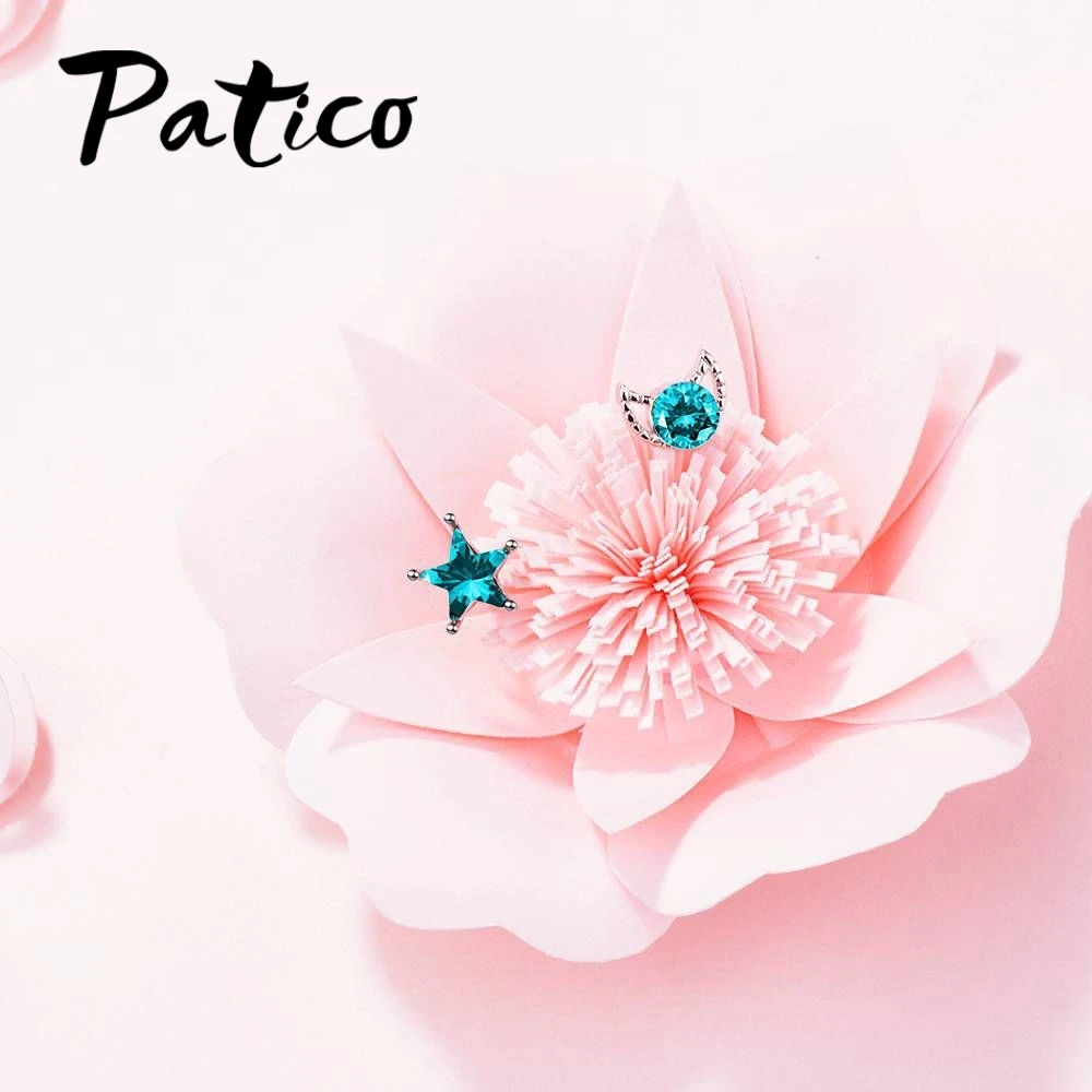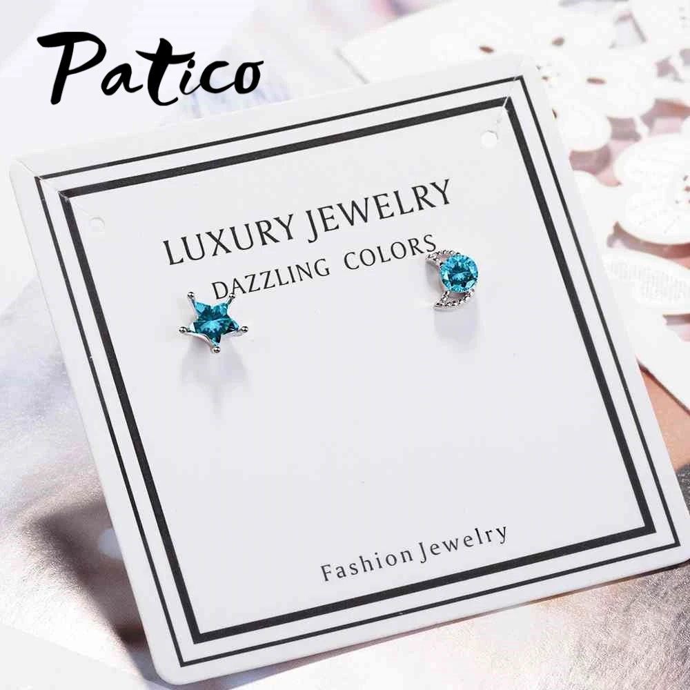 PATICO Top Quality New Cute Design Clear Cubic Zirconia Moon Star Stud Earrings For Women Romantic Party Jewelry Accessories