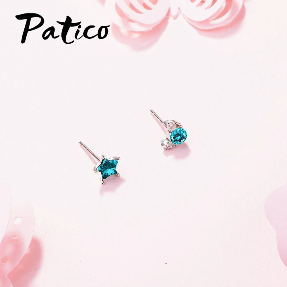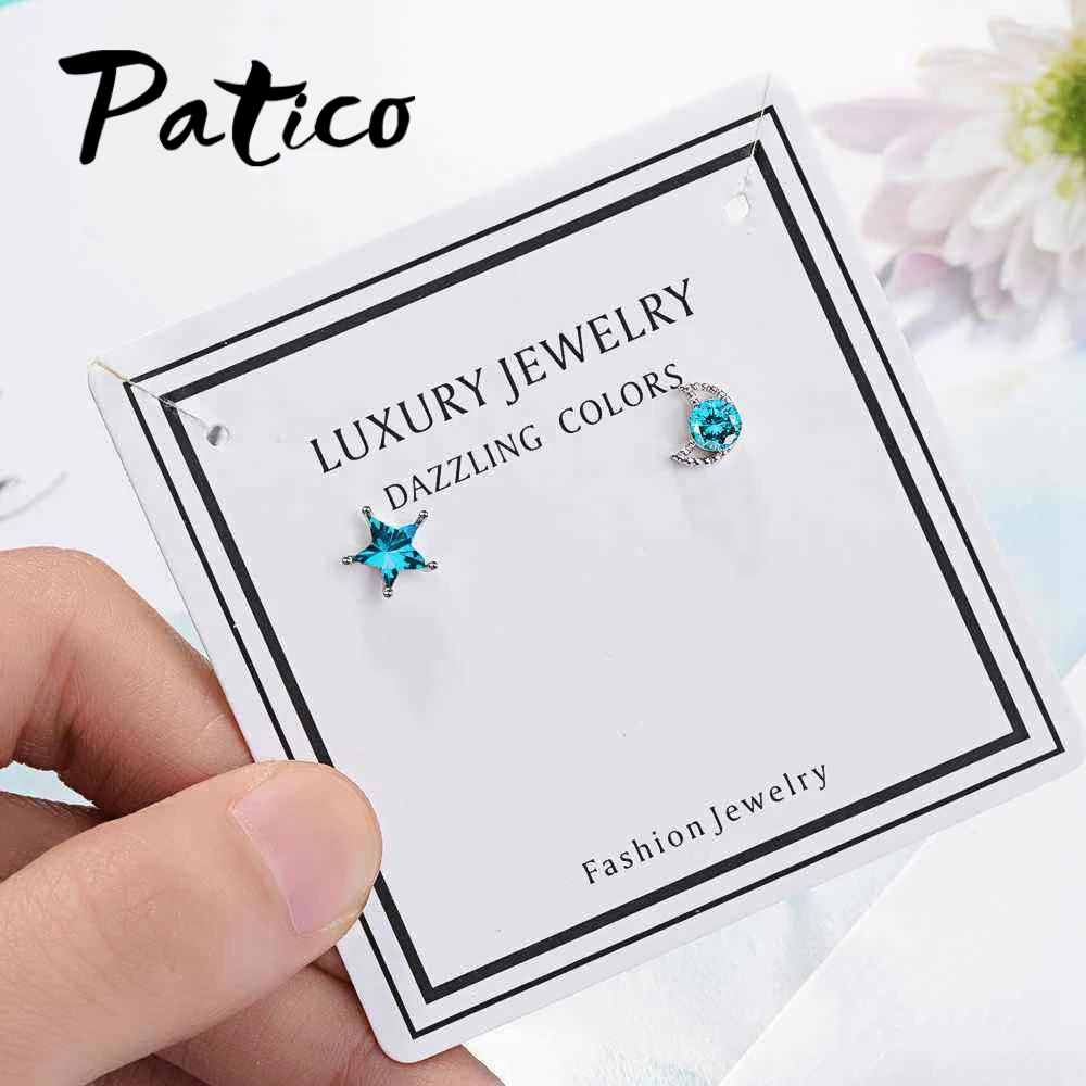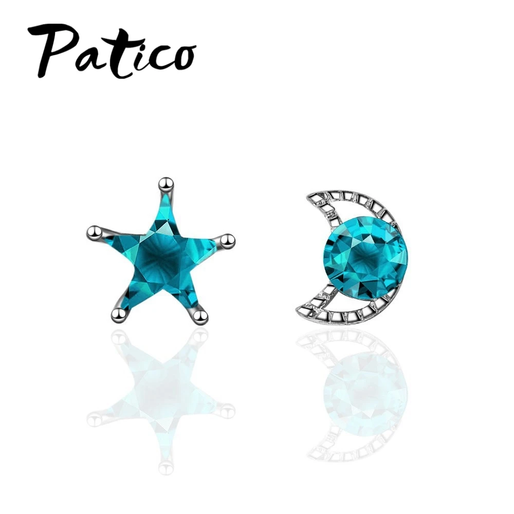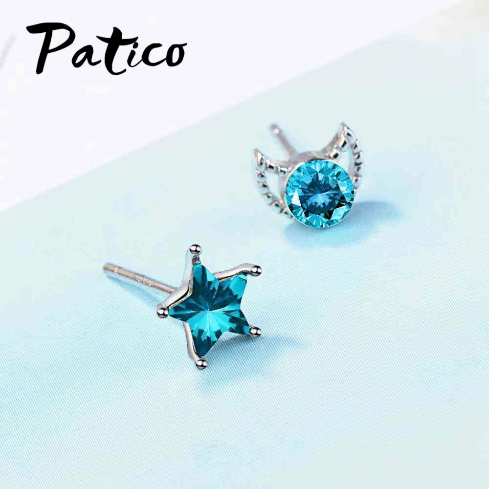 PATICO Top Quality New Cute Design Clear Cubic Zirconia Moon Star Stud Earrings For Women Romantic Party Jewelry Accessories