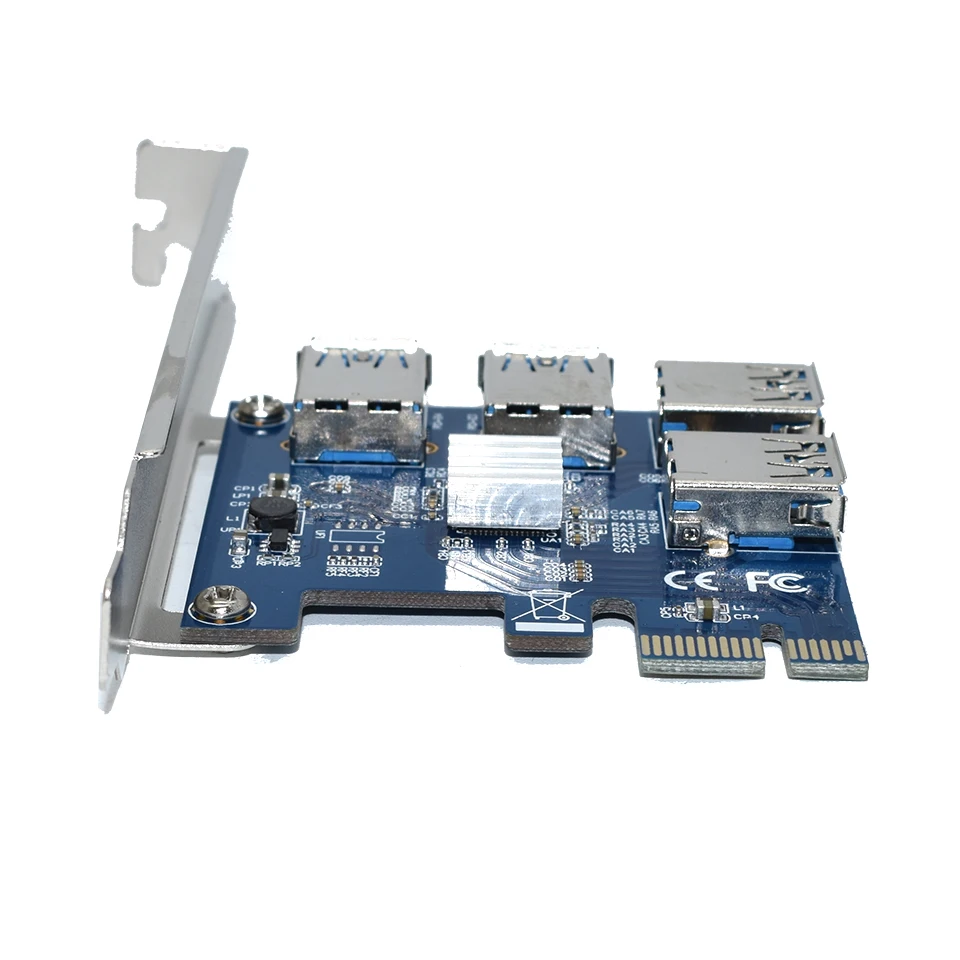 PCIE PCI-E PCI Express Riser Card 1x to 16x 1 to 4 USB 3.0 Slot Multiplier Hub Adapter For Bitcoin Mining Miner BTC Devices