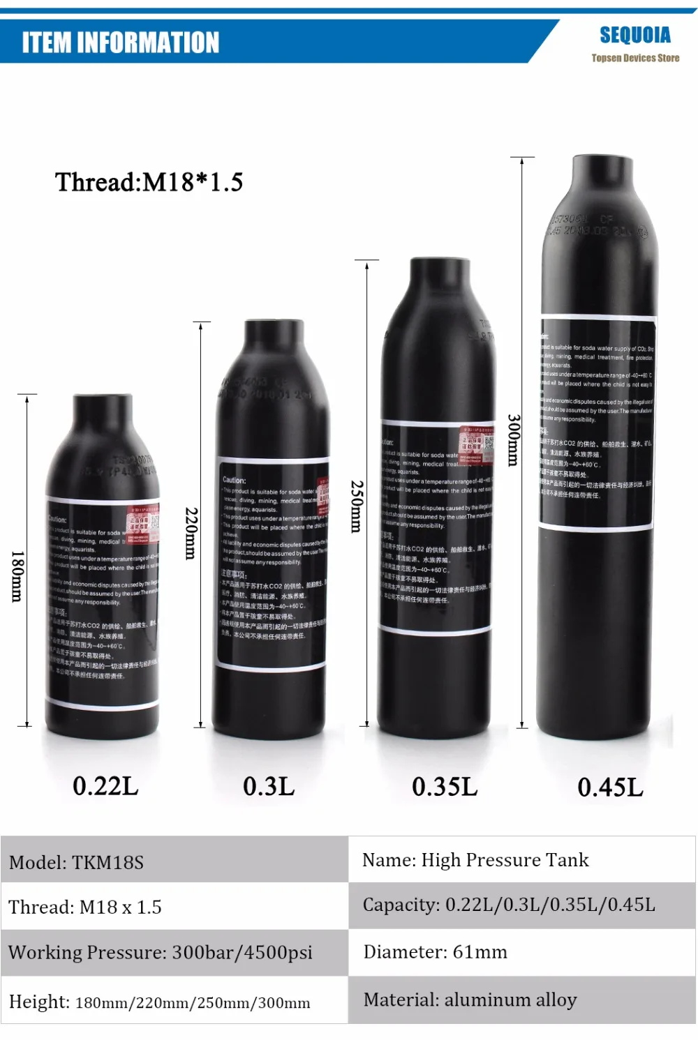 PCP Paintball Airforce Airsoft HPA Cylinder M18x1.5 0.22L/0.3L/0.3L/0.45L Air Bottle 6061 Aluminum Alloy Tank 300bar/4500psi