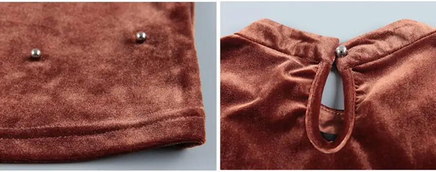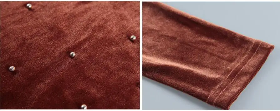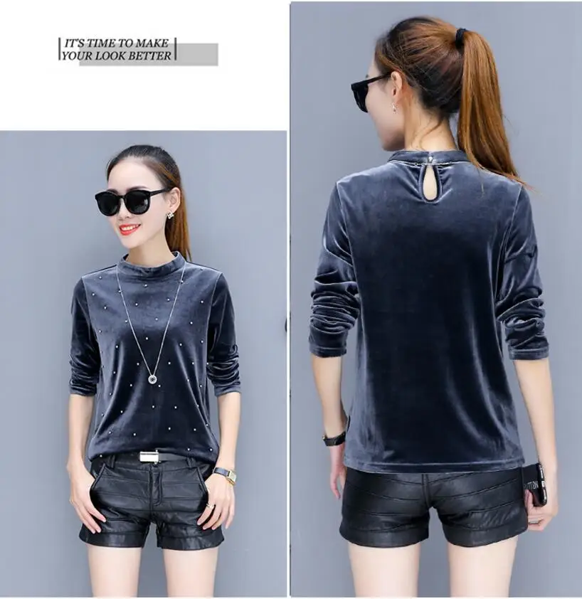 Pearl Beading Blouses 2018 Autumn Women Velvet Blouse Long Sleeve Casual Shirt Women Tops O-neck Elegant Ladies Camisas Mujer