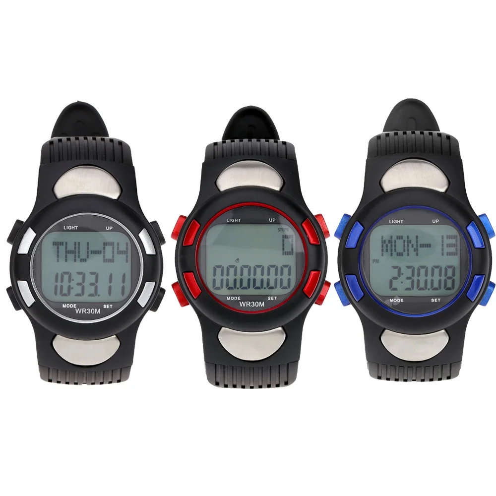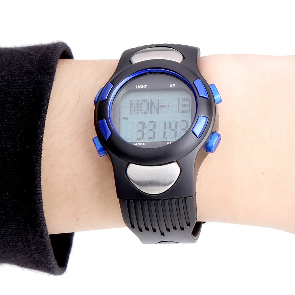 Pedometer Heart Rate Monitor Digital Sports Watches Calories Fitness Men Women Military EL Backlight Outdoor 3ATM Waterproof