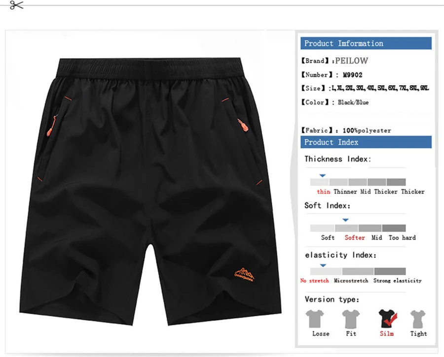PEILOW men shorts for men summer Beach Male Fitness Men’s casual elastic waist summer short plus size 10XL 9XL 8XL 7XL 6XL 5XL