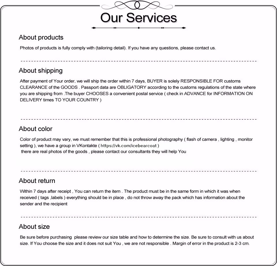 *You can submit refund requests within 15 days after the guaranteed period for delivery (45 days) has expired. You can do it by sending a message on Contact Us page