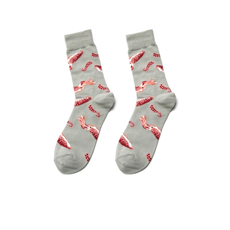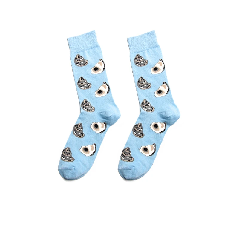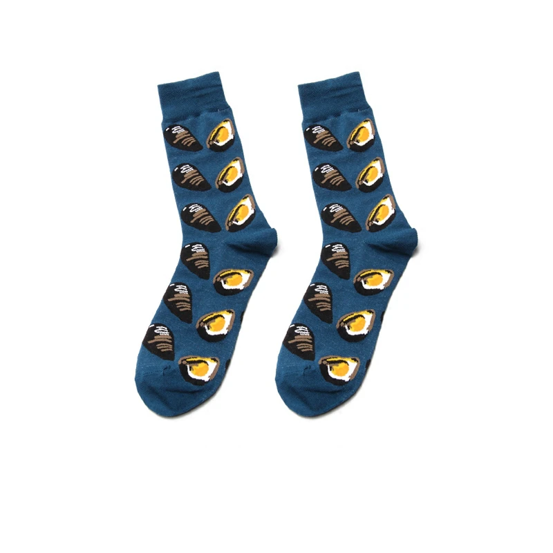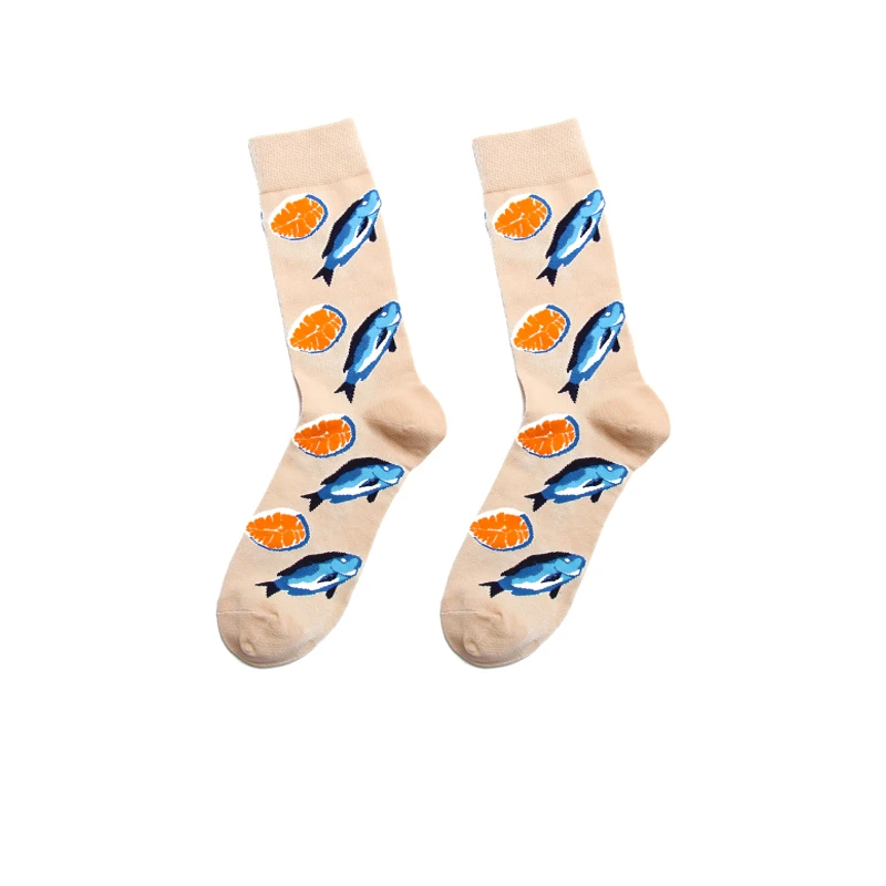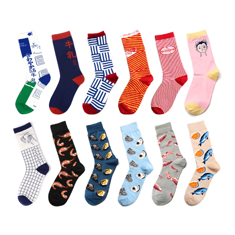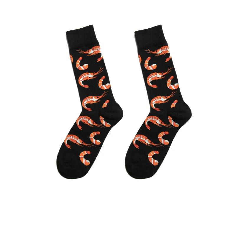 PEONFLY Men Colorful Striped Plaid Happy Cotton Socks Fashion Funny Printed Food Milk Seafood Pattern Male dress Long Warm Socks
