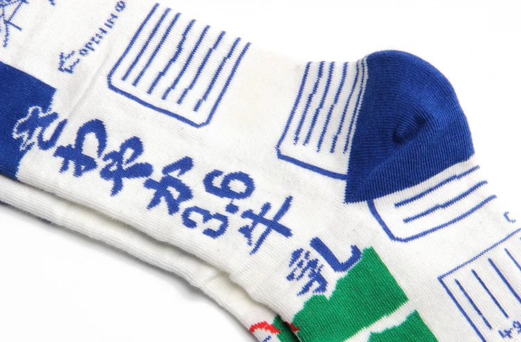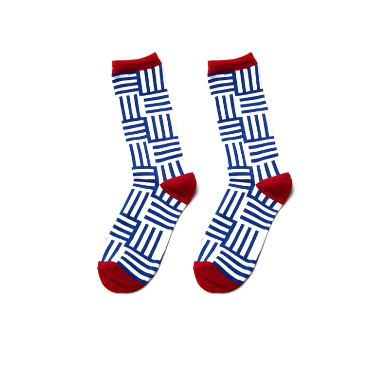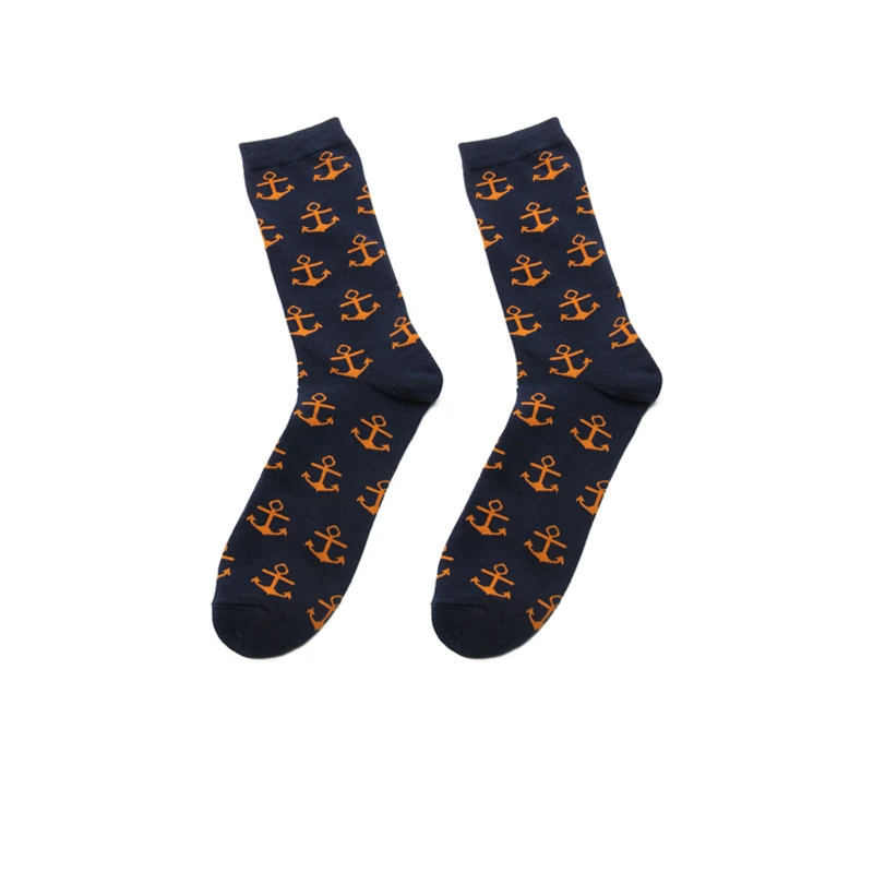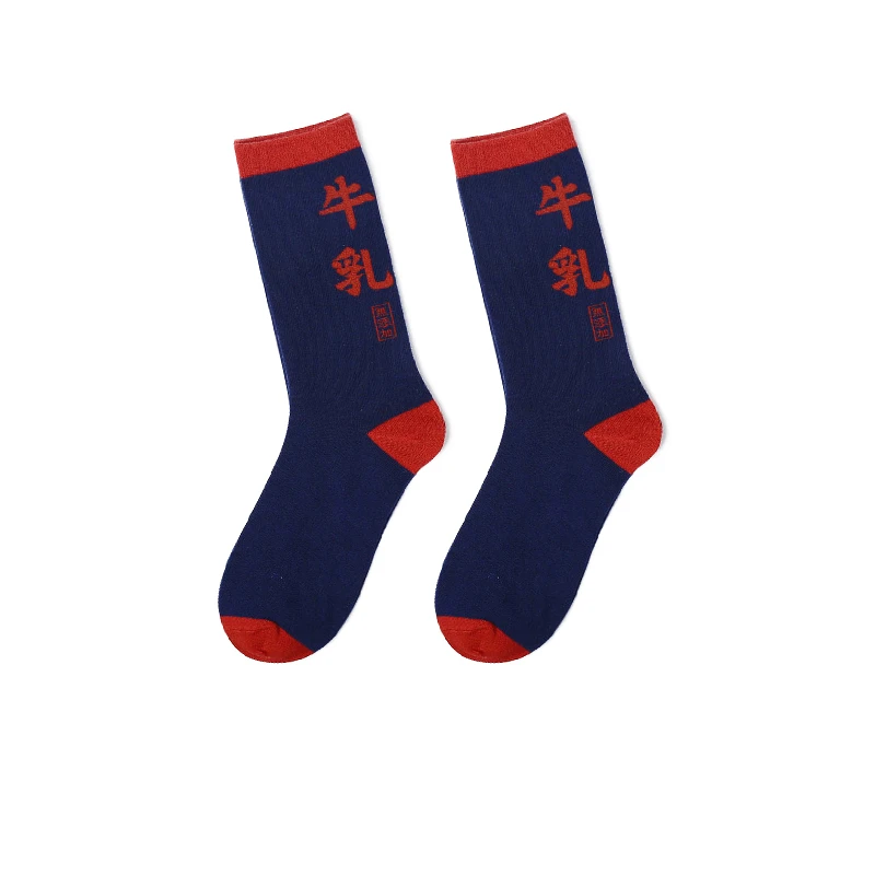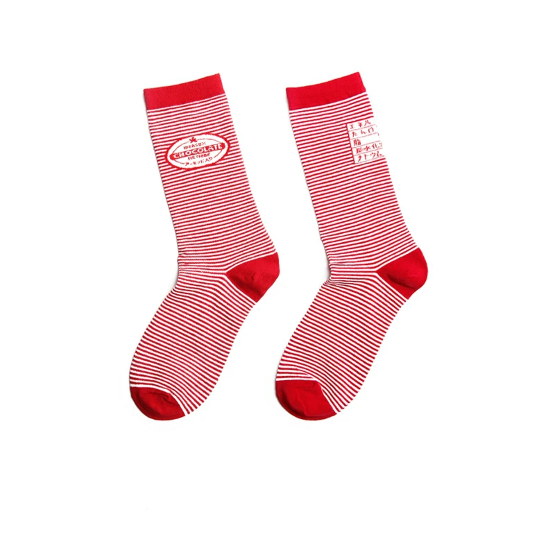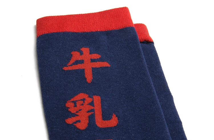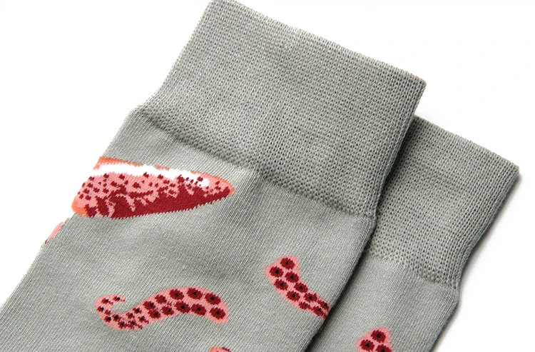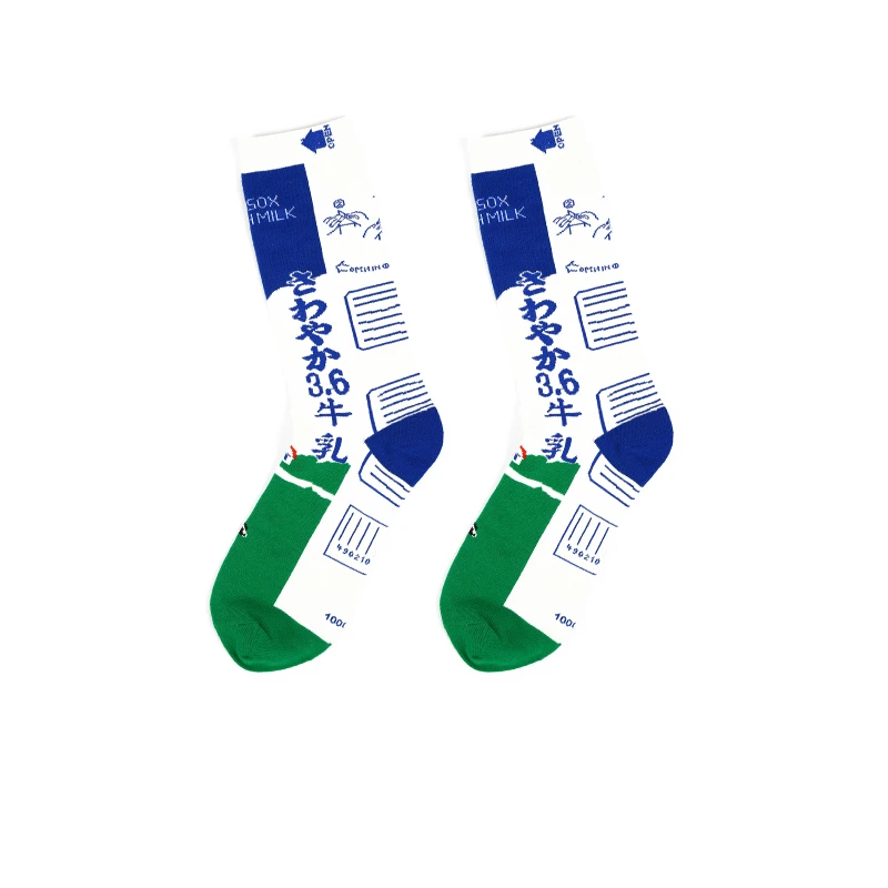 PEONFLY Men Colorful Striped Plaid Happy Cotton Socks Fashion Funny Printed Food Milk Seafood Pattern Male dress Long Warm Socks