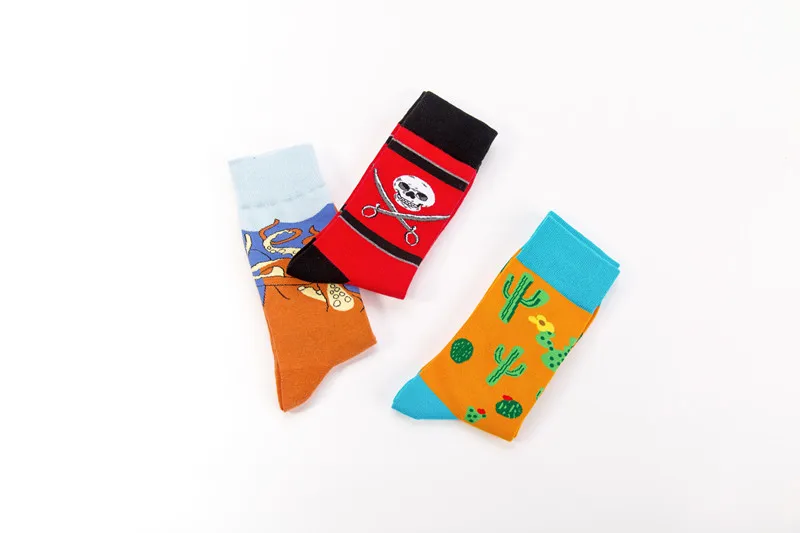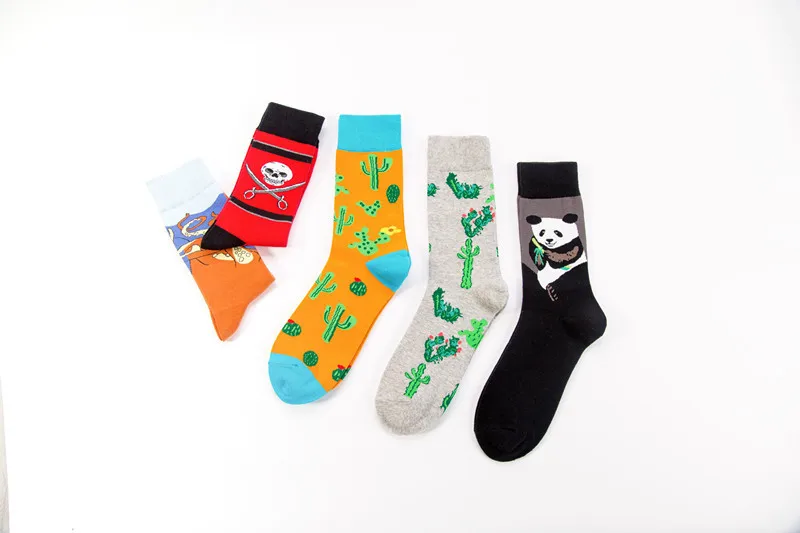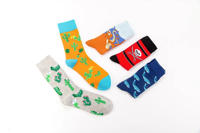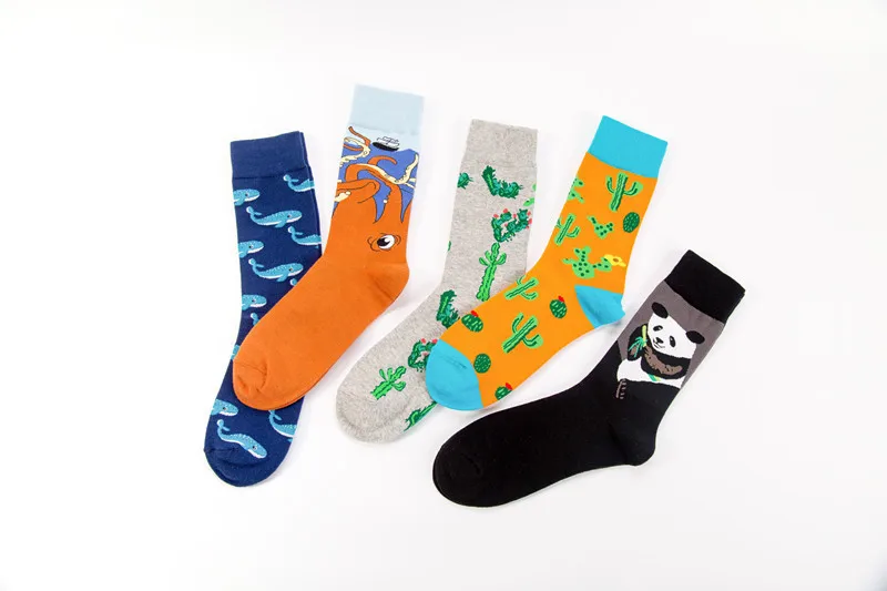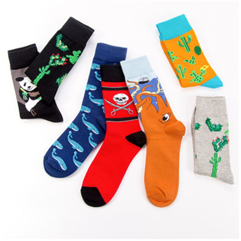 PEONFLY New Print Animals Plant Cute Cartoon Panda Octopus Whale Cactus Pattern Personality Pirate Flag Fashion Men Cotton Socks
