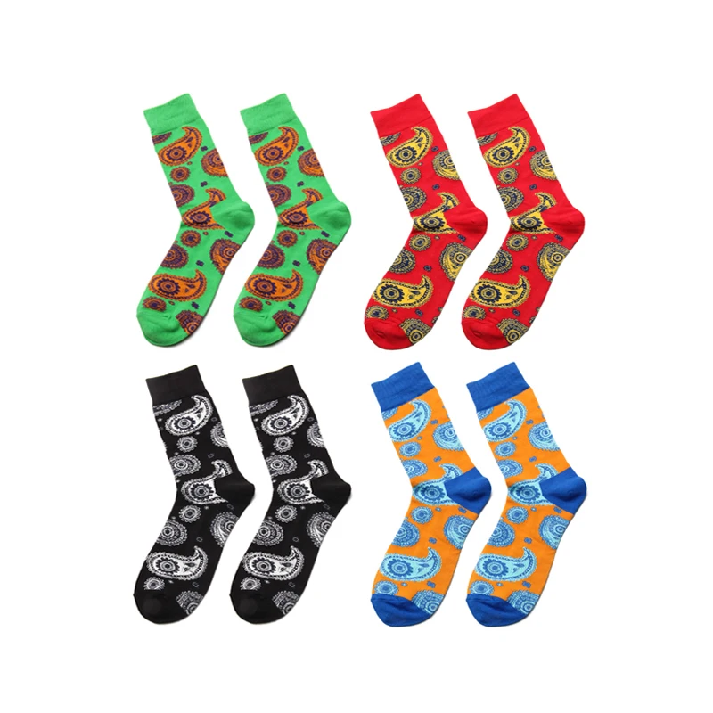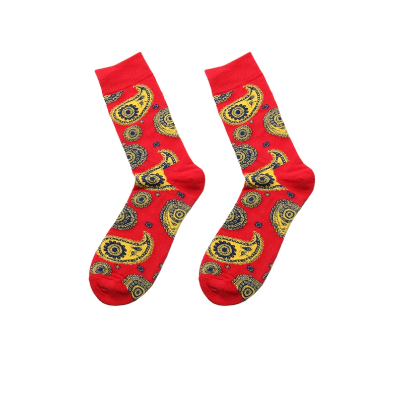 PEONFLY New Winter Men Novelty Colorful Cartoon Cashew FLOWER Pattern Cotton Socks High Quality Fashion Hip Hop Skateboard Socks