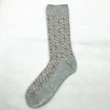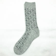PEONFLY Print Geometry Diamond Lattice Fashion Jacquard Pattern Man Socks Male Funny Casual Business Cotton Socks Autumn Winter