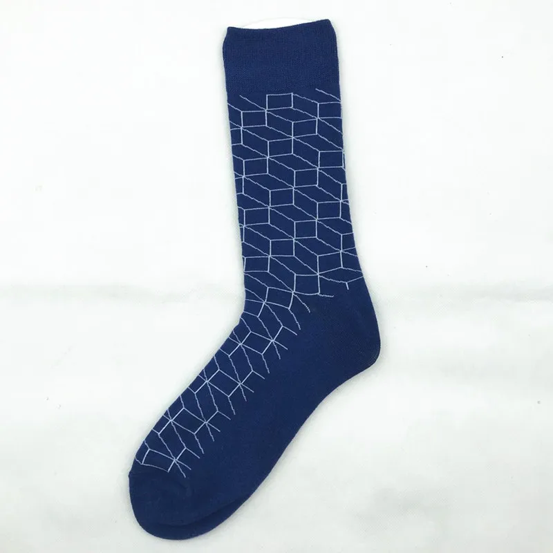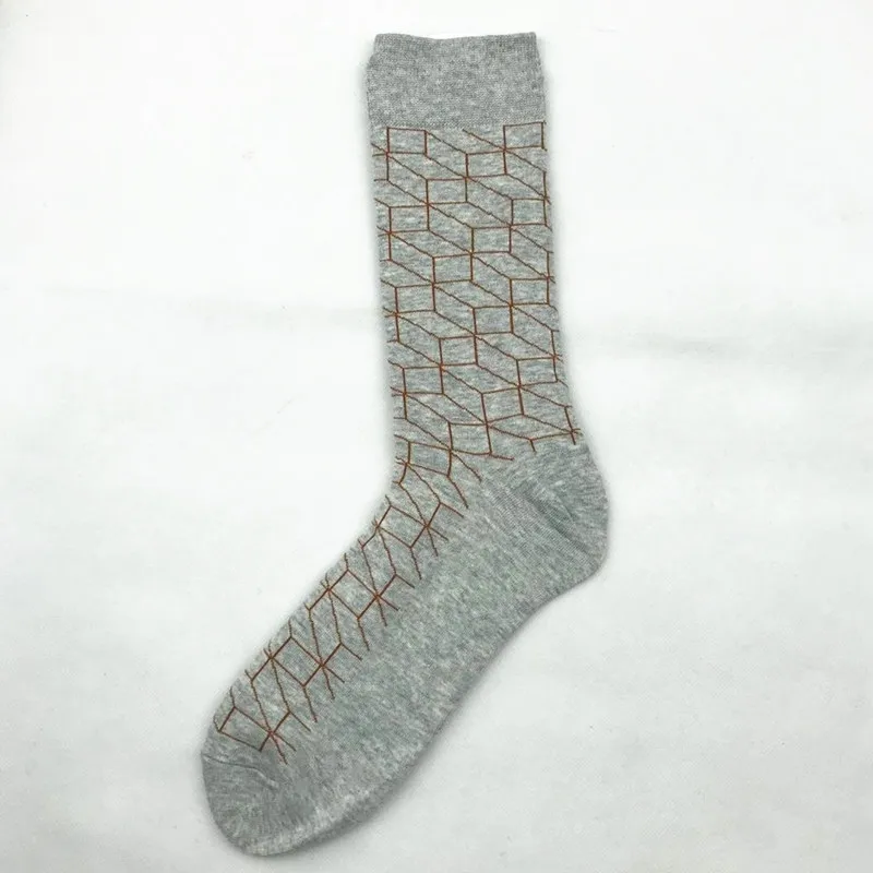 PEONFLY Print Geometry Diamond Lattice Fashion Jacquard Pattern Man Socks Male Funny Casual Business Cotton Socks Autumn Winter