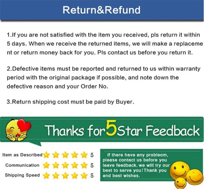 • If you do not want the product you’ve received you may request a refund but you must return the item at your expense and the item must be unused.