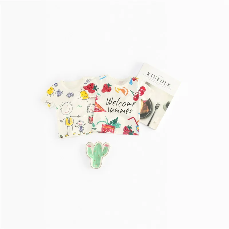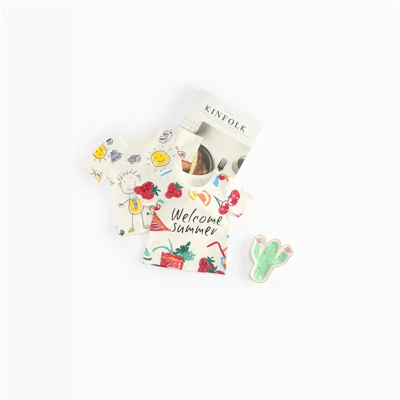 Personalidade Doodles Baby Boys Girls T-shirt Cartoon Newborn Summer Clothing Short Sleeve 0-24Months Kids Tops T shirts Outfits