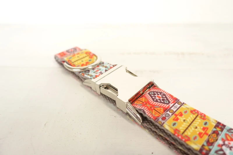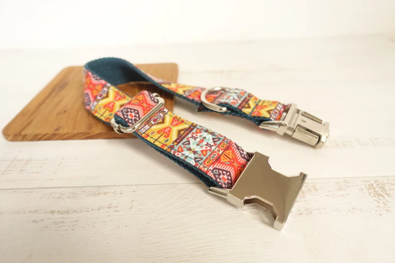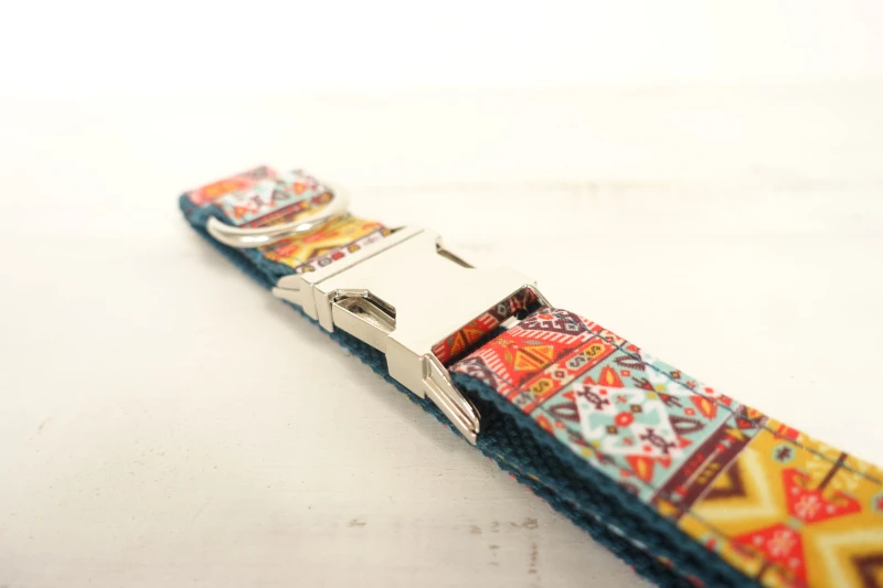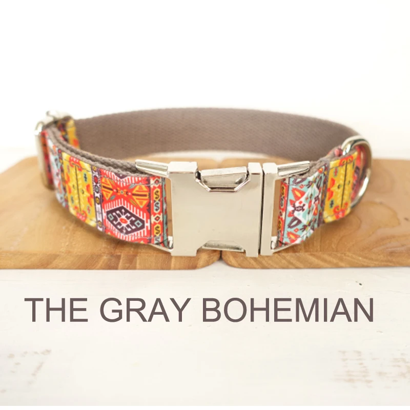 Personalized Laser Engraved Metal Buckle Dog Collar 3 cotton BOHEMIAN styles to choose