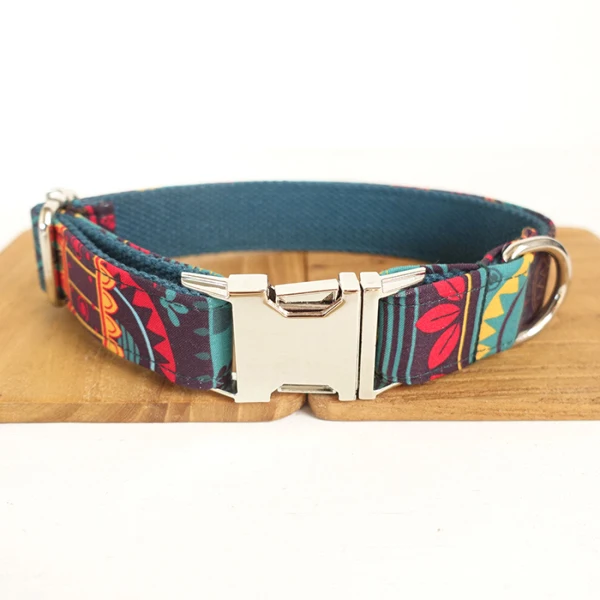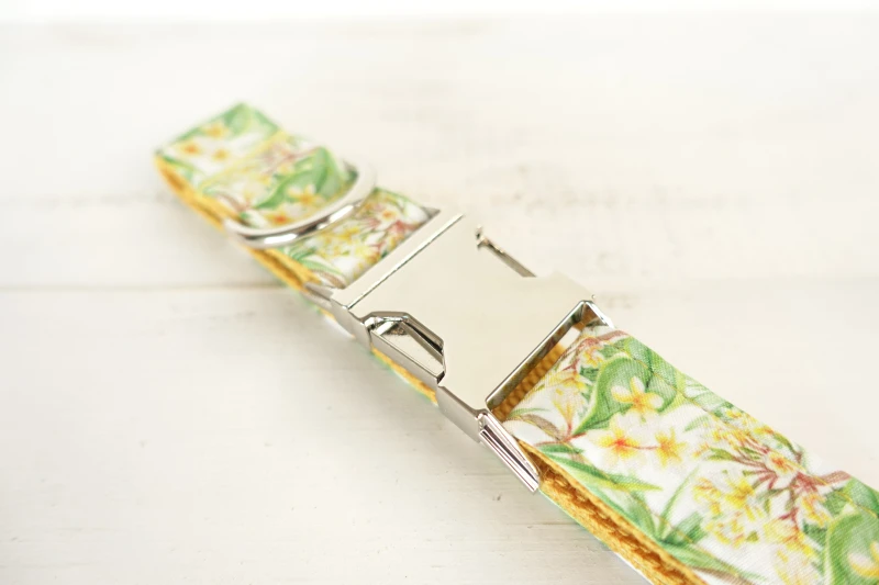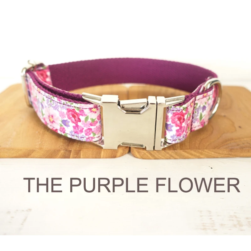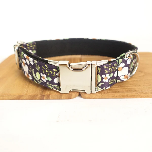 Personalized Laser Engraved Metal Buckle Dog Collar 3 cotton flower styles to choose