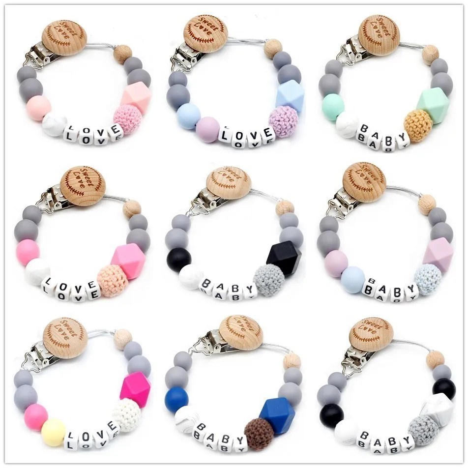 New 9 styles DIY holder personalized name silicone baby pacifier clip pacifier chain teething pacifier chew toy baby dummy clips
