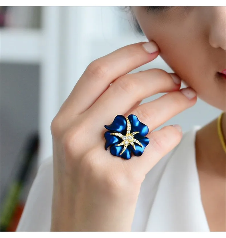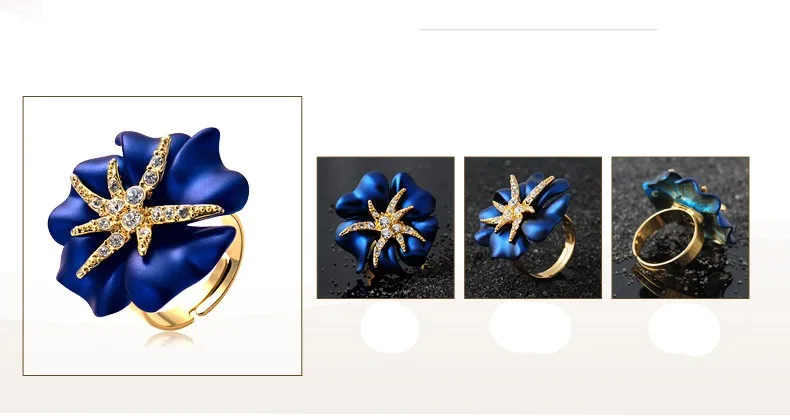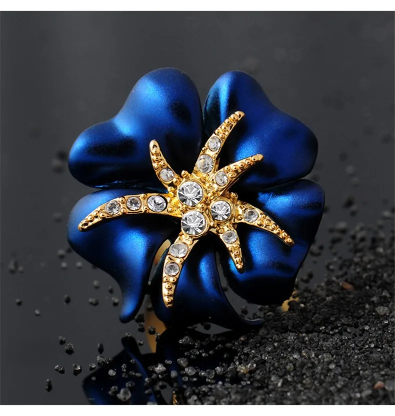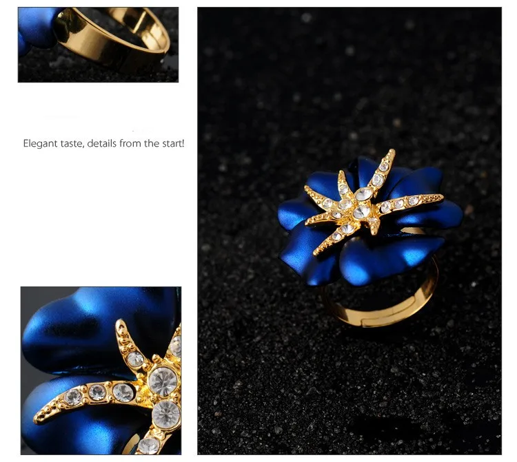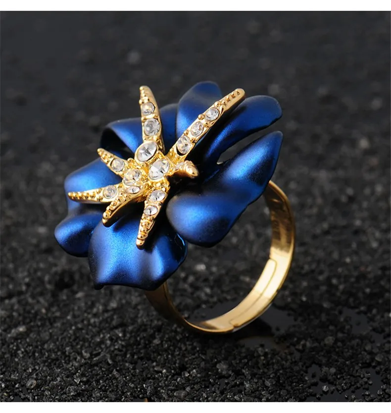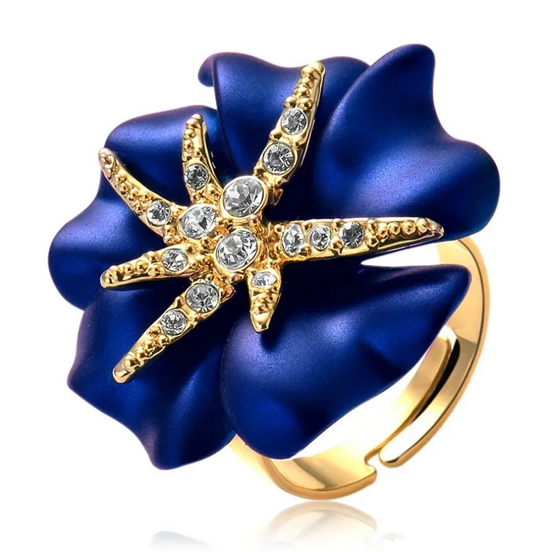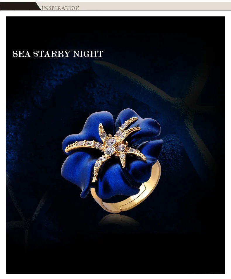 Personalized Starfish Night Gold Plated Enamel Red and Blue Ring Fashion Jewelry Female Ring Bijoux