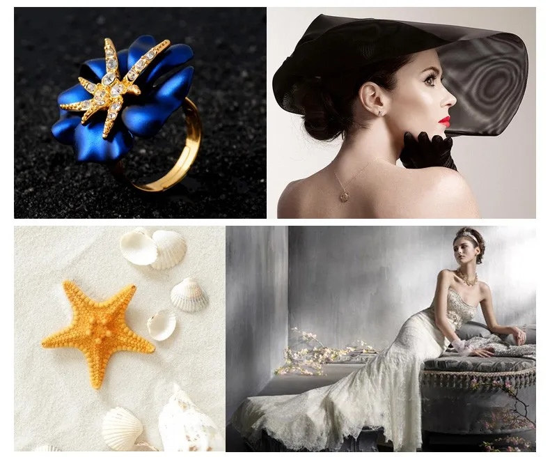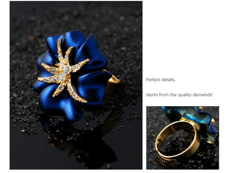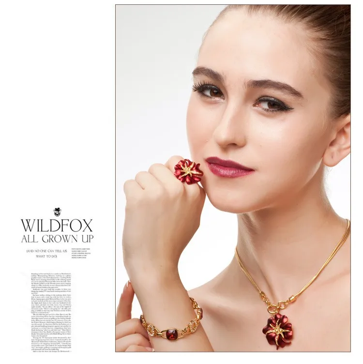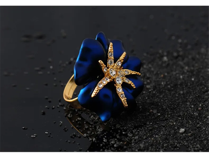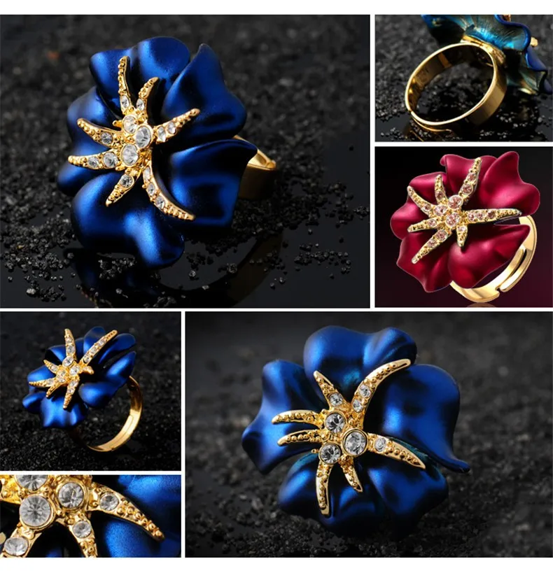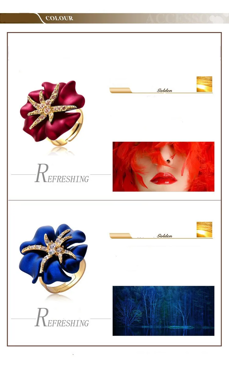 Personalized Starfish Night Gold Plated Enamel Red and Blue Ring Fashion Jewelry Female Ring Bijoux