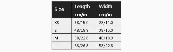 | Size: | XS | Length(cm/in): | 38/15 | Width(cm/in): | 28/11 |