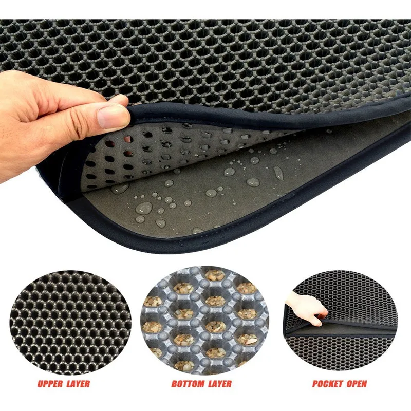 Cat Litter Mat EVA Double-Layer Cat Litter Trapper Mats with Waterproof Bottom Layer Black Cat Bed