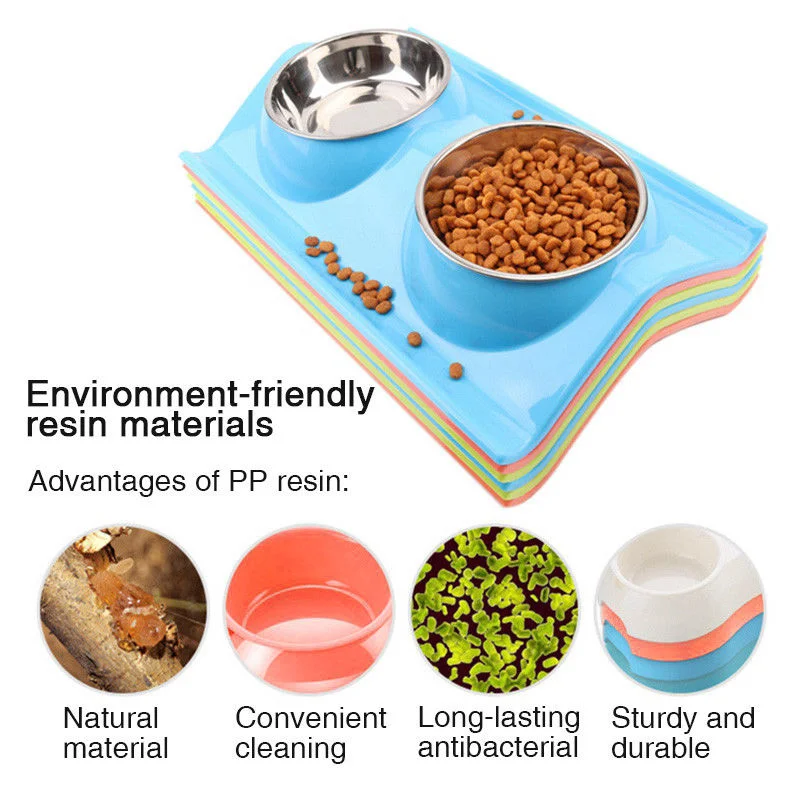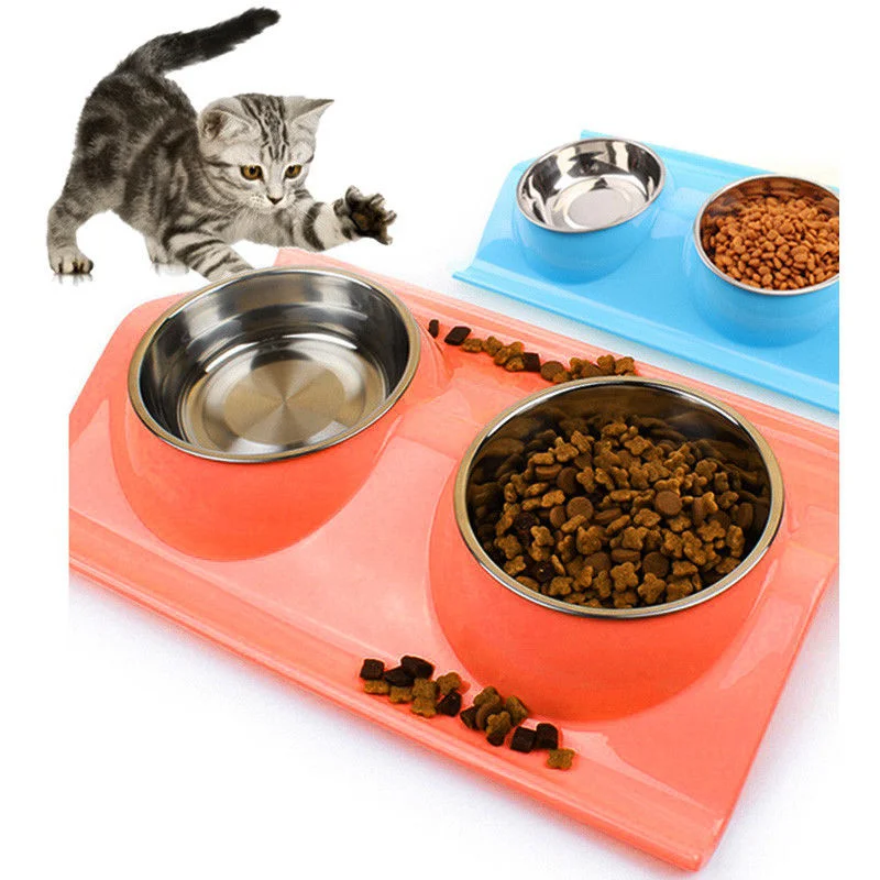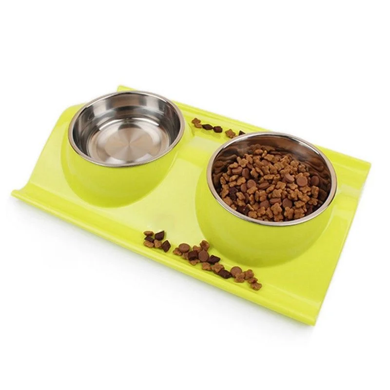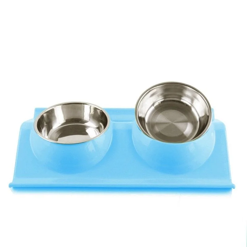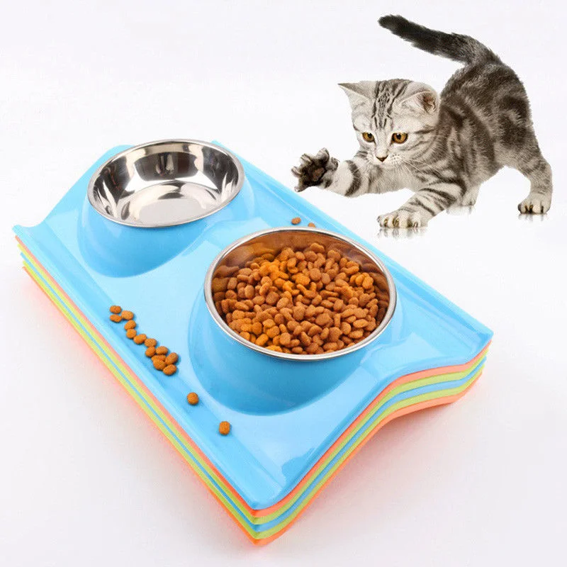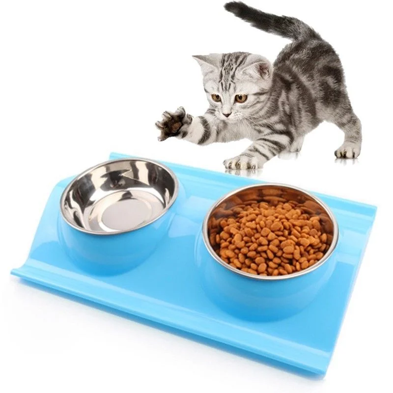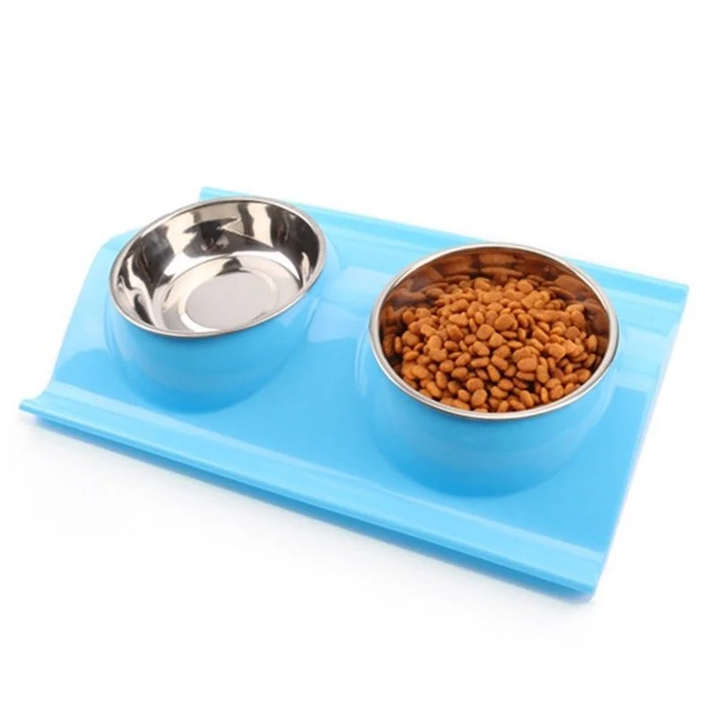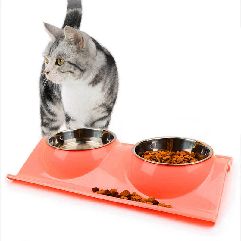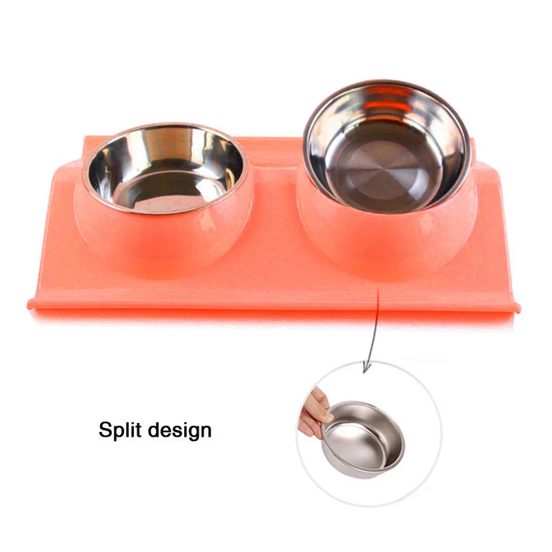 Pet Dog Bowl Double Stainless Steel Puppy Feeding Food Water No Spill Tableware Anti-skid Pet Dog Cat Food Water Bowl Pet Feeder