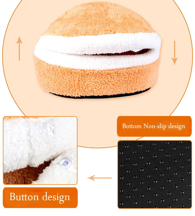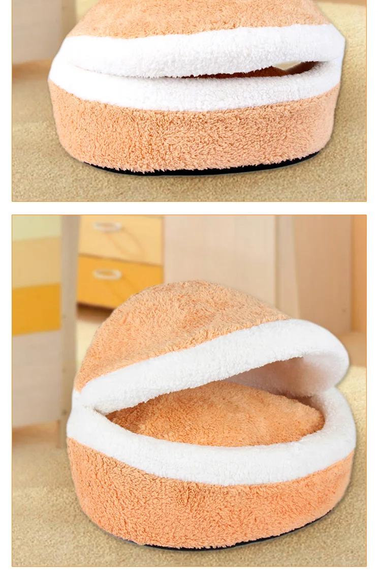 Pet Dog Cat Bed Cats House Kennel Bed Mat Shell-shaped Burger Bun Sleeping Bag Detachable Washable Windproof Cattery