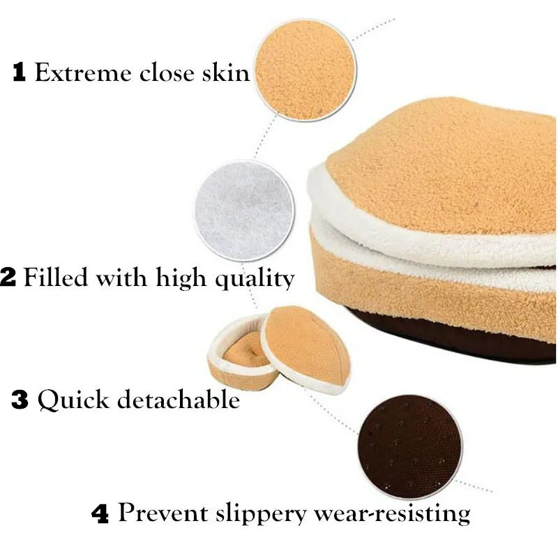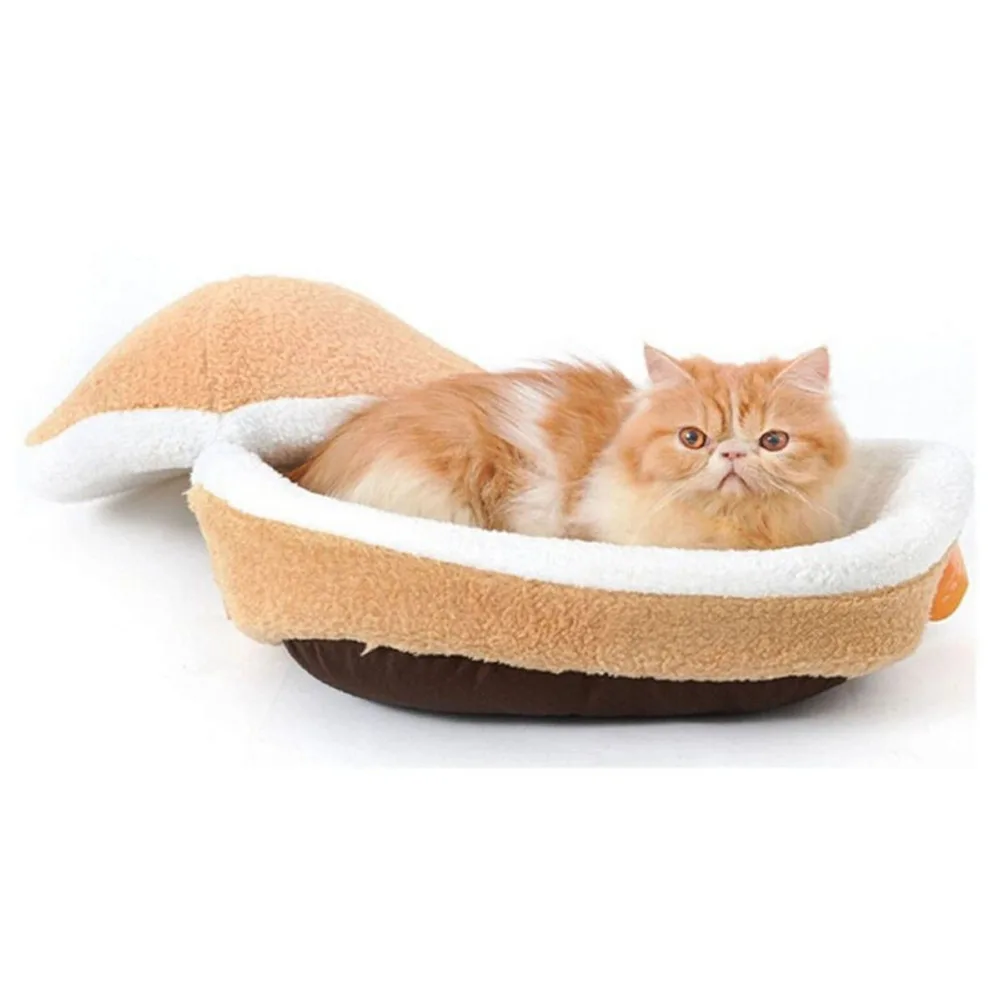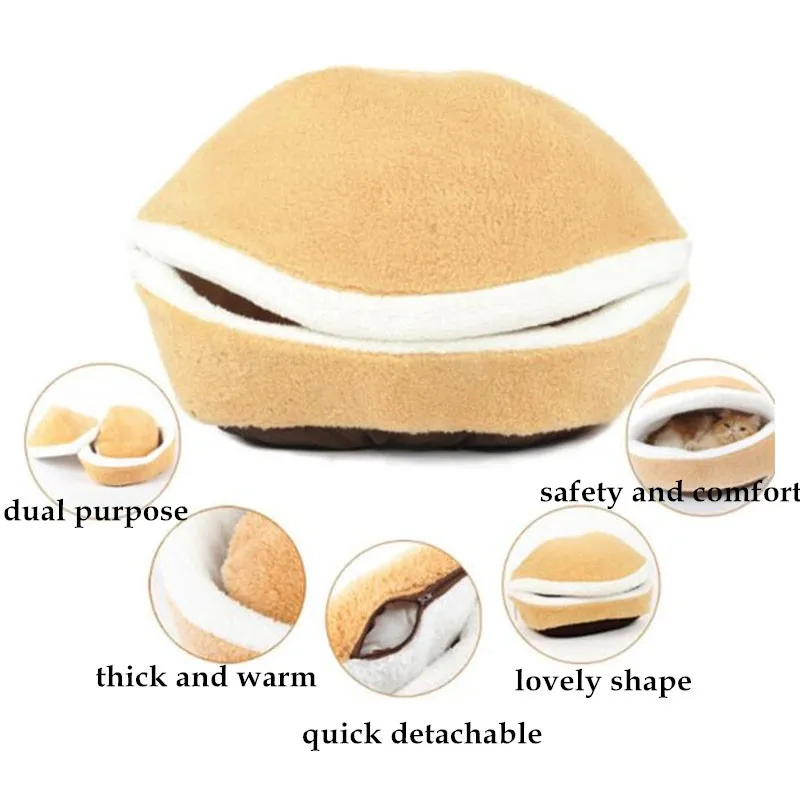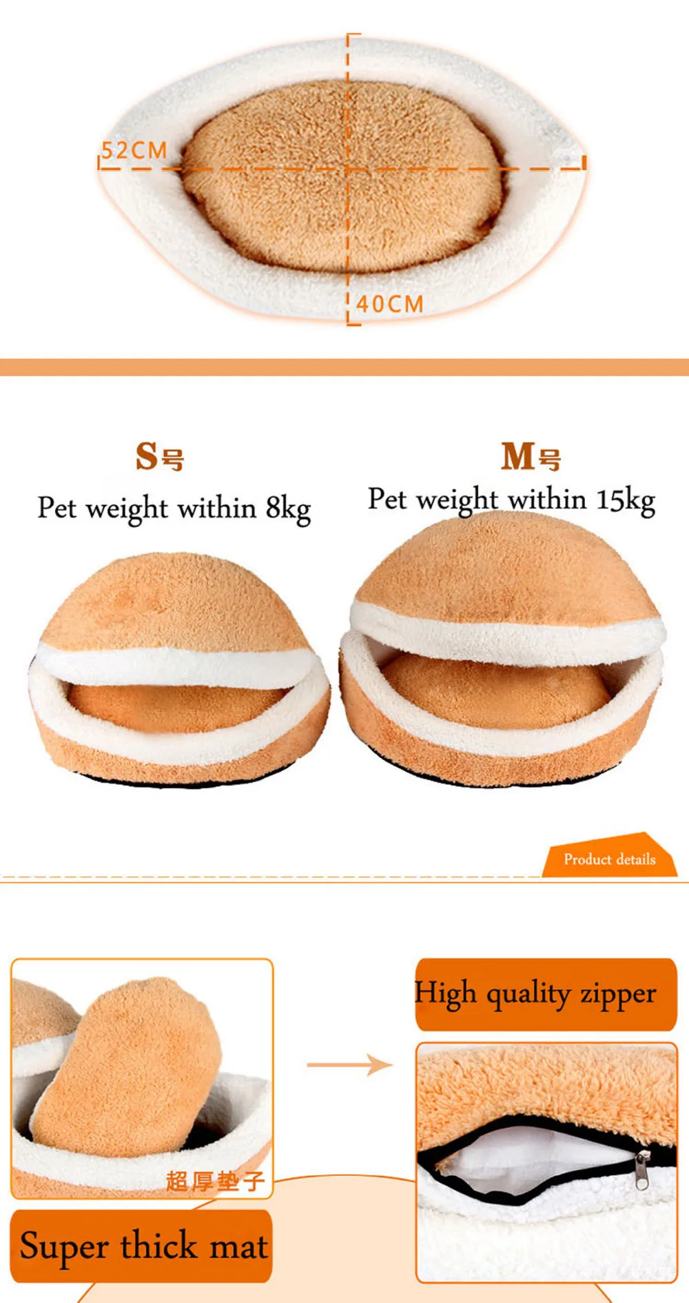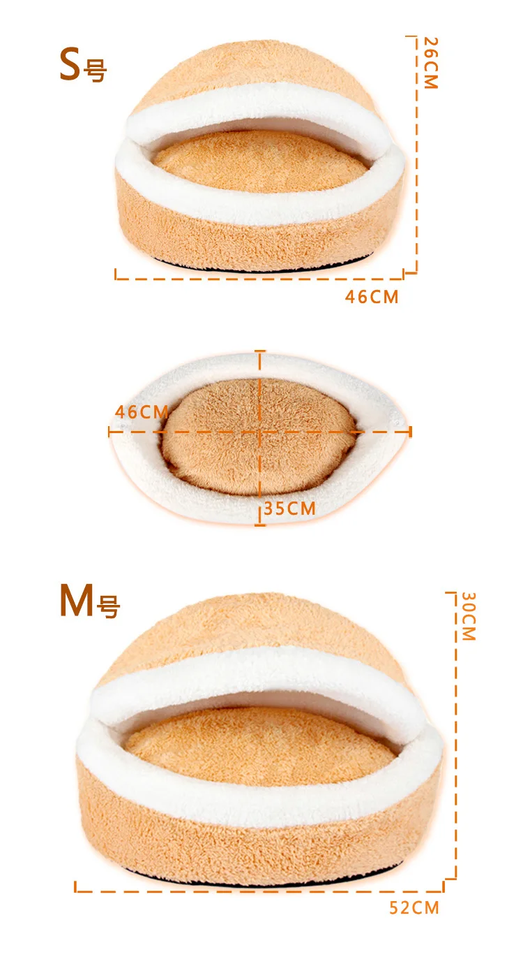 Pet Dog Cat Bed Cats House Kennel Bed Mat Shell-shaped Burger Bun Sleeping Bag Detachable Washable Windproof Cattery