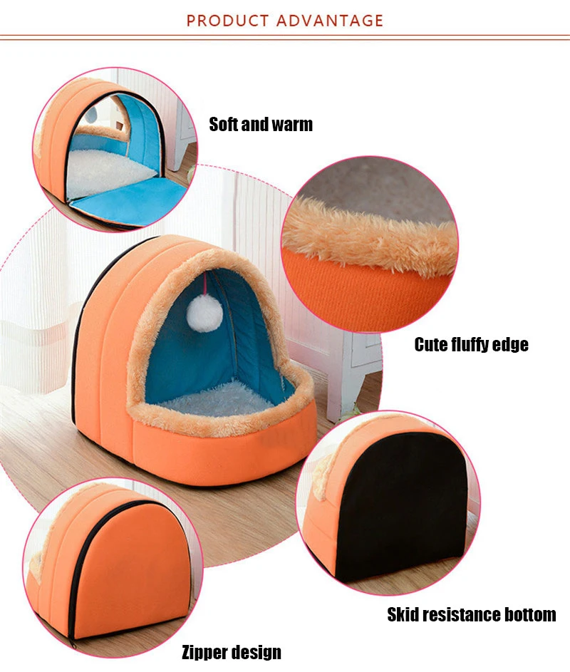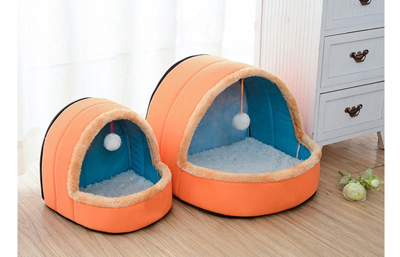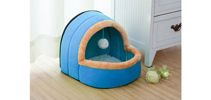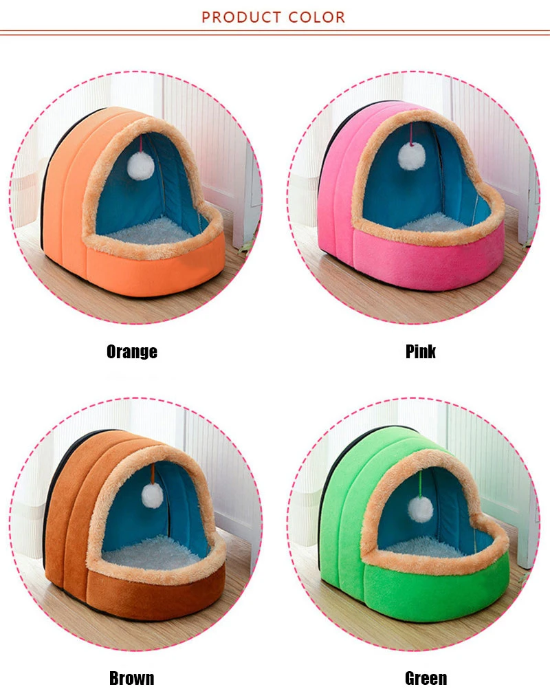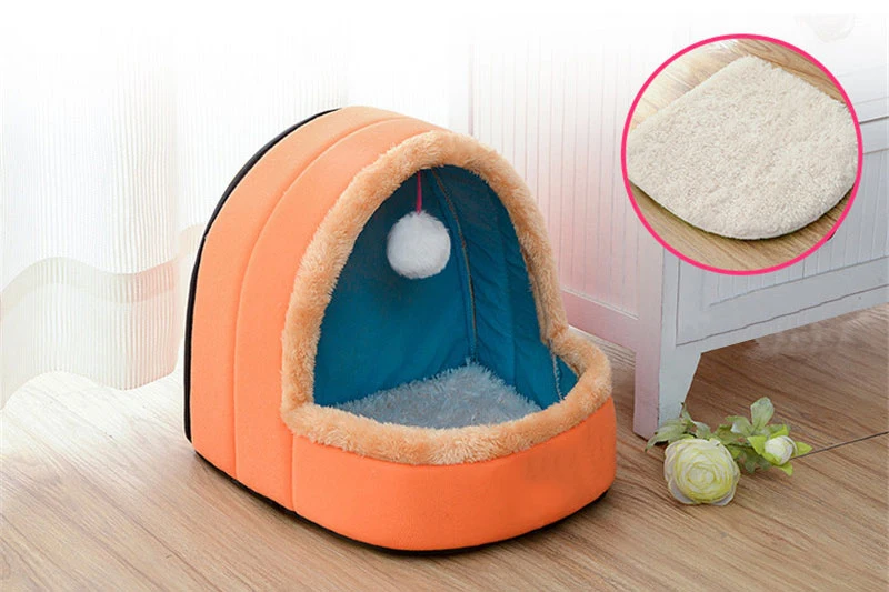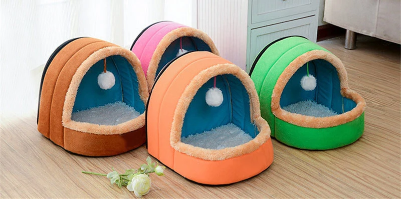 Pet Dog Cat Bed Foldable Puppy House With Toy Ball Warm Soft Cottom Pet Cushion Perro Kennel Kitten Castle 5 Colors