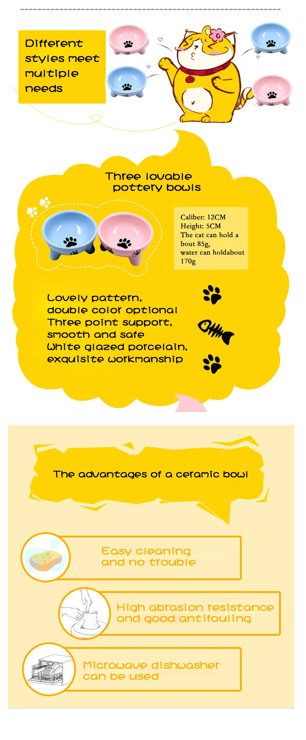 Pet Dog Cat Food Feeder Ceramic Non-slip Food Bowl Dispenser Water dispenser Small Dog Feeding Bowl bol cats products