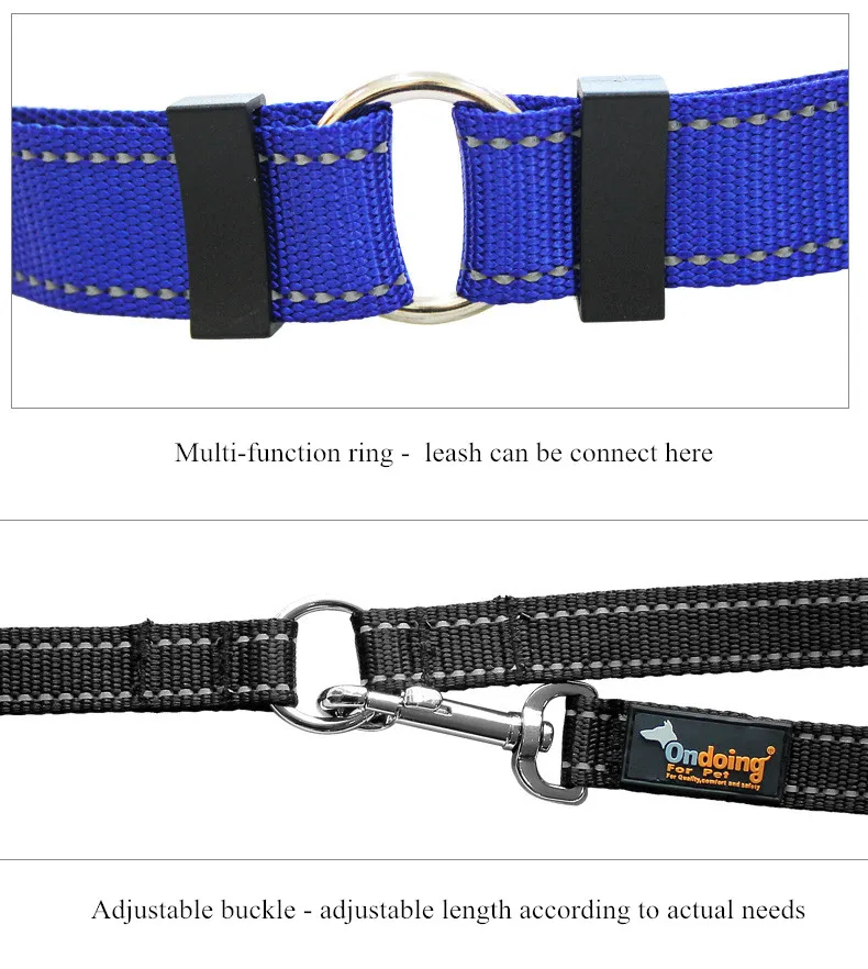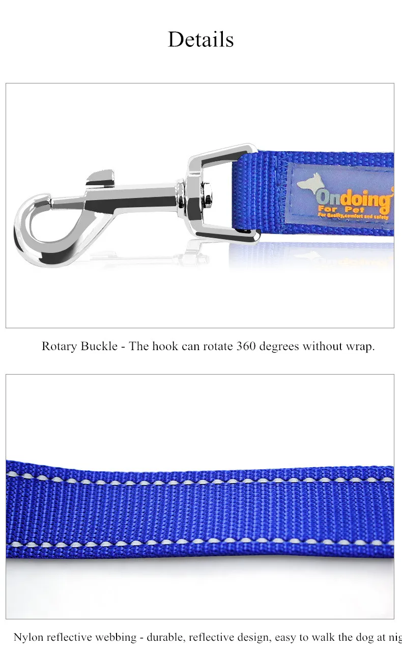 1,Nylon reflective webbing – durable, reflective design, easy to walk the dog at night.