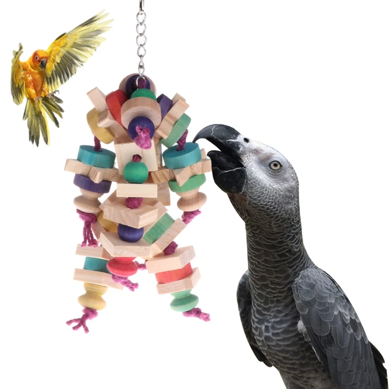 Pet Parrot Toy Chewing Bite Strands Colorful Wooden Beads Bird Parakeet Hanging Cage Bird Toy 2018