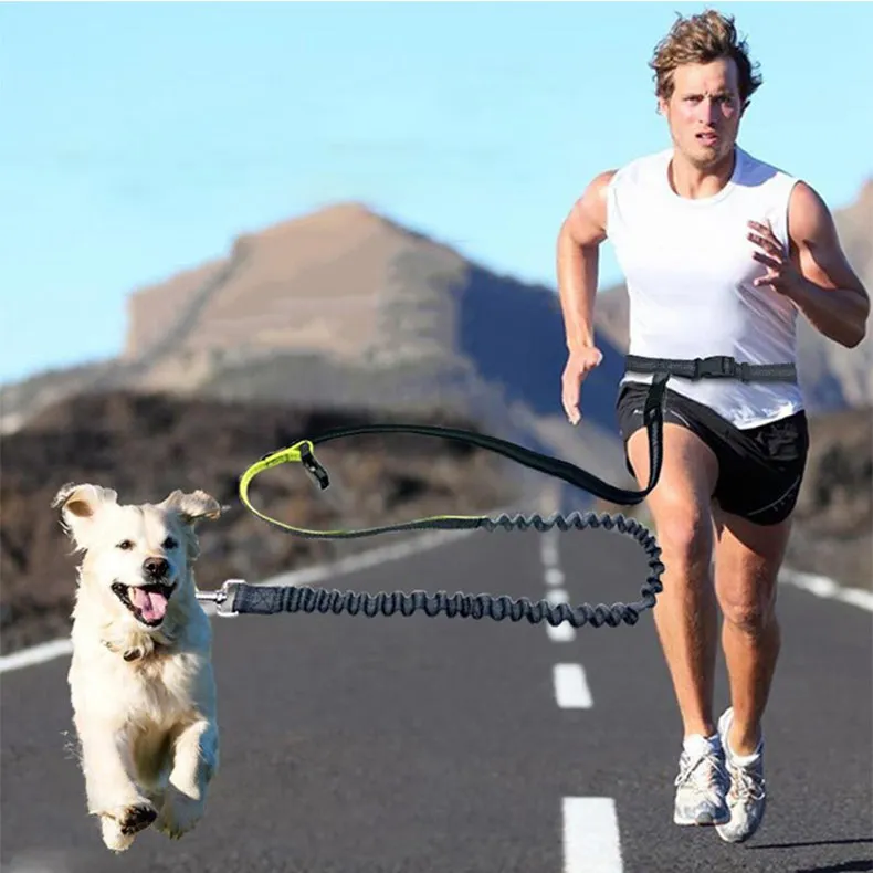 Pet Sport Elastic Nylon Dog Leash Running Hands Free Leash For Dog Harness Lead Collar Jogging Waist Belt Training Adjustable