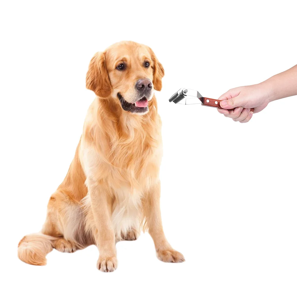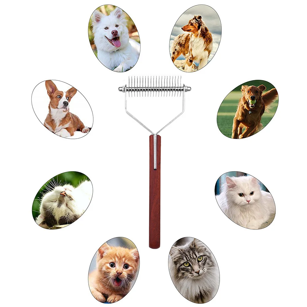 Petacc Anti-slip Wooden Handle Hair Brushes Combs Pet Groomer Comb Rake Dual Sided Hair Brush Remover Puppy Kitten Grooming Tool