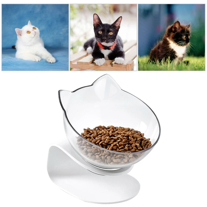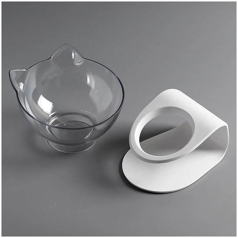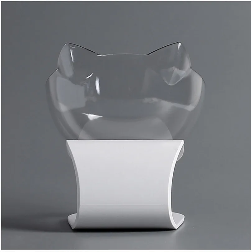 Petacc Pet Bowl Anti-slip Cat Dish Tilted Pet Feeder with Slope Base Suitable for Most Cats White and Transparent