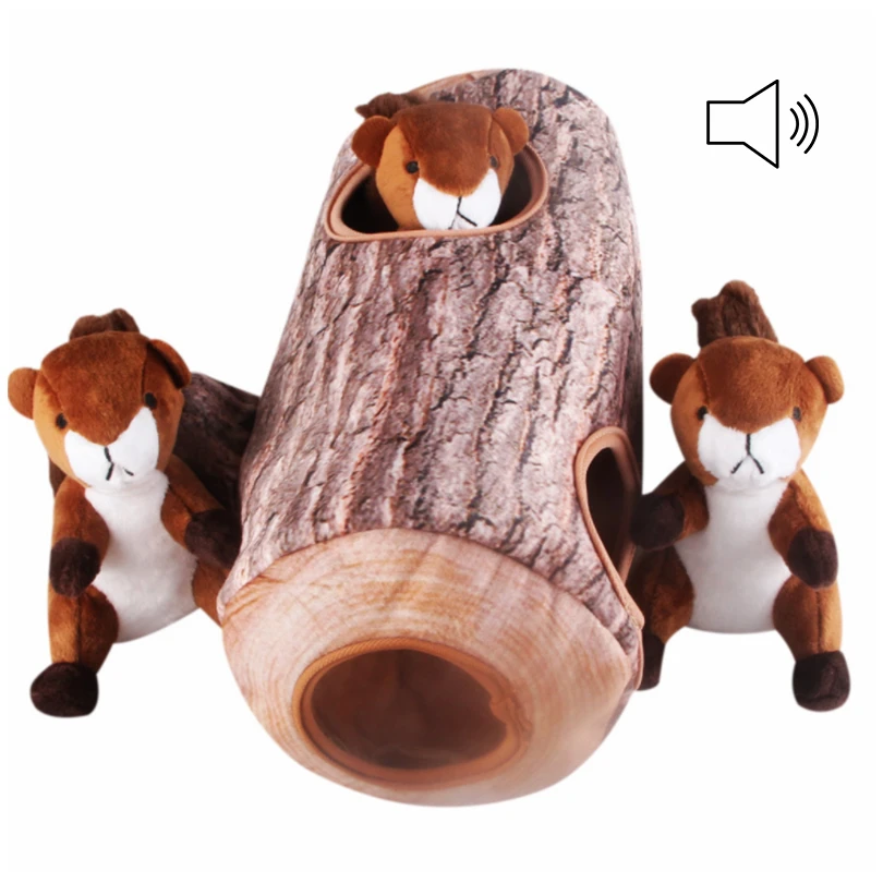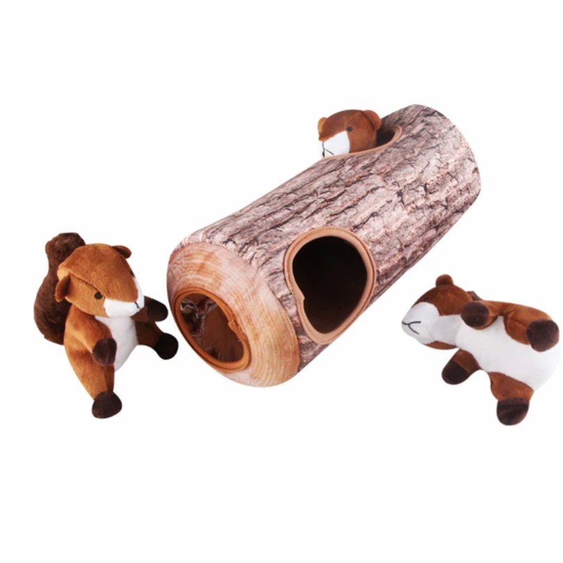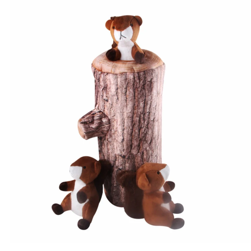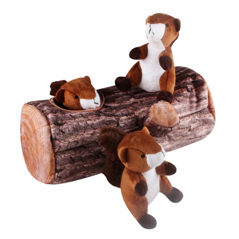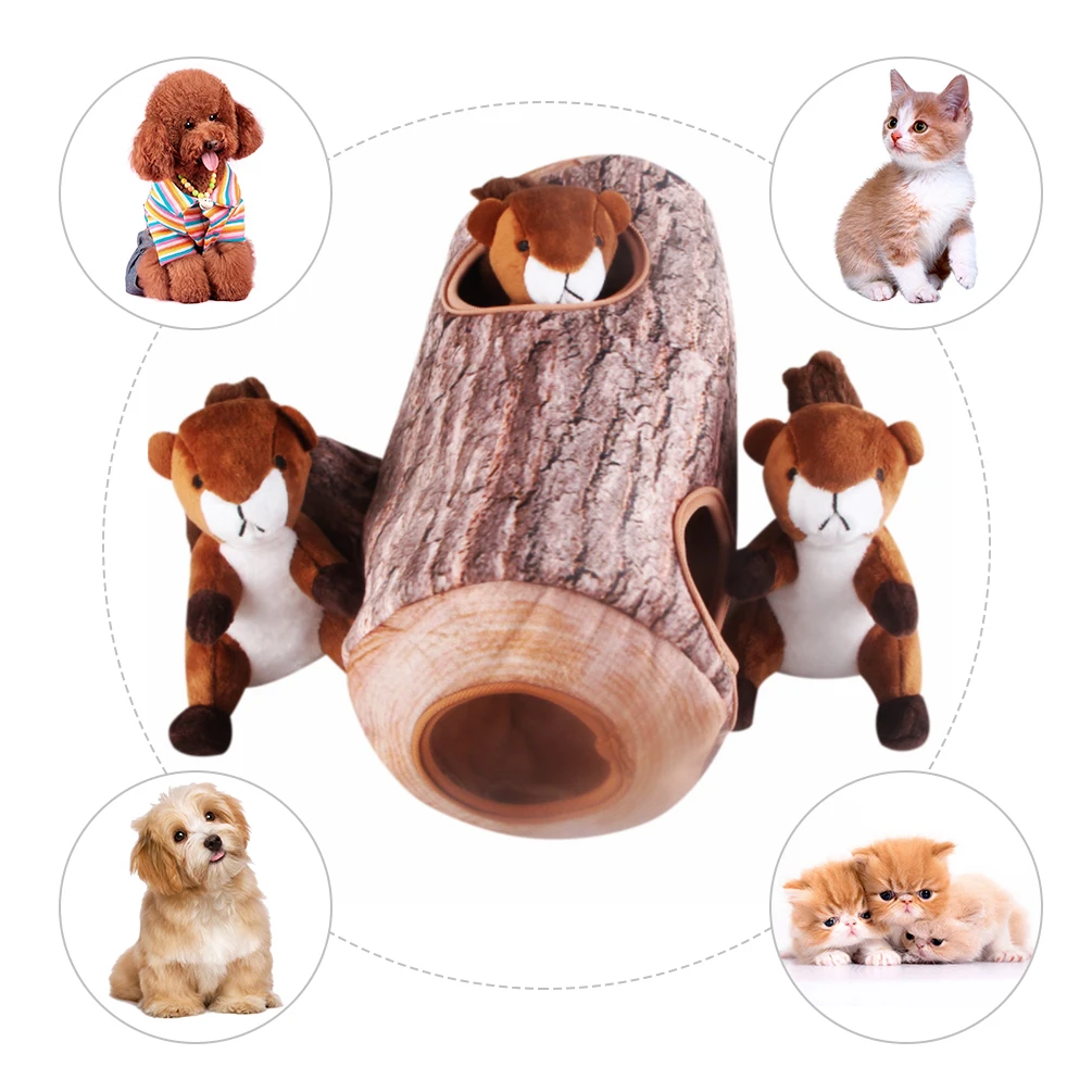 Petacc Pet Plush Squeaker Toy Hide and Seek Dog Stuffed Sound Toy Bite-resistant Pet Chew Toys with 1 Stump and 3 Squirrels