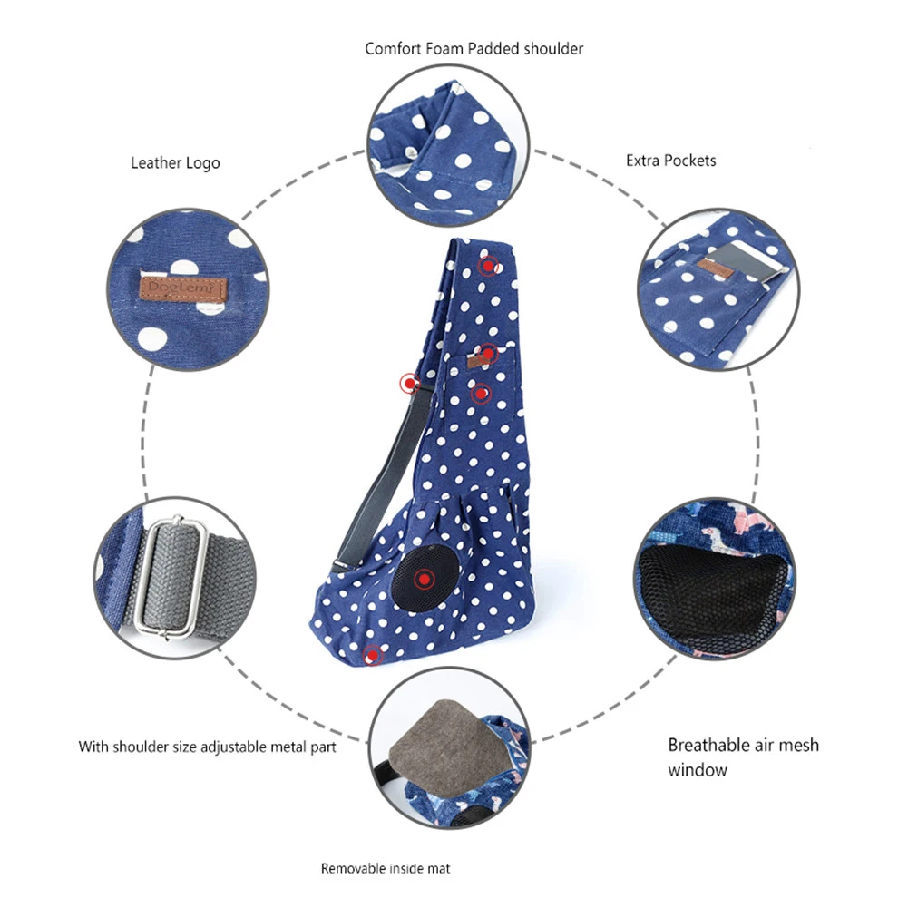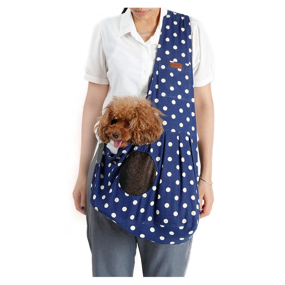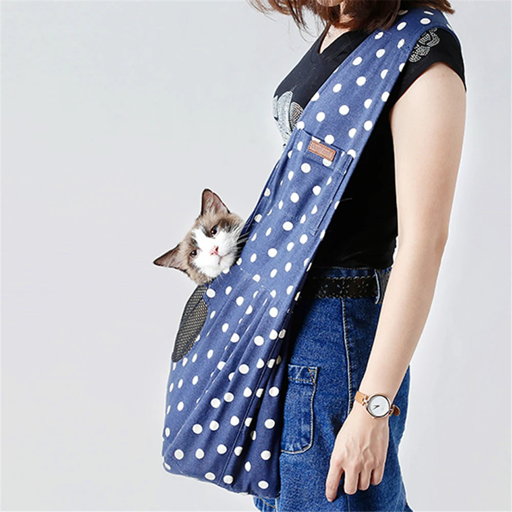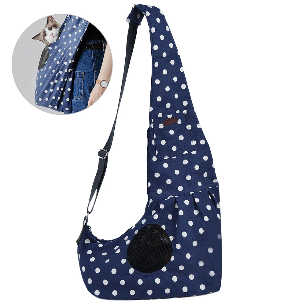 Petacc Portable Pet Sling Bag Fashionable Dog Cat Sling Carrier Bag Practical Puppy Kitty Pouch with Dot Pattern