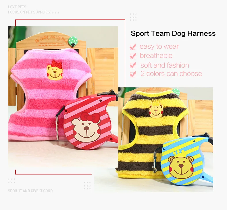 Petcircle Hot Adjustable Soft Breathable Dog Cat Harness Chihuahua Cute Bear Leash harness for Pet puppy Soft Chest Strap collar