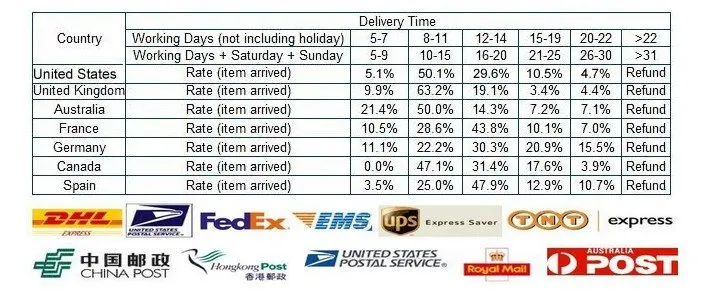 • Via China Post Air Mail delivery Time: