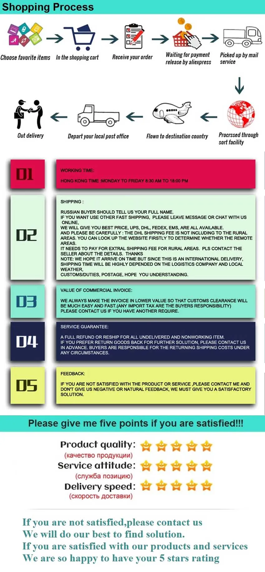 • If you did not receive the product within the guaranteed time( 45 days not including 2-5 day processing) you can request a refund or a reshipment.