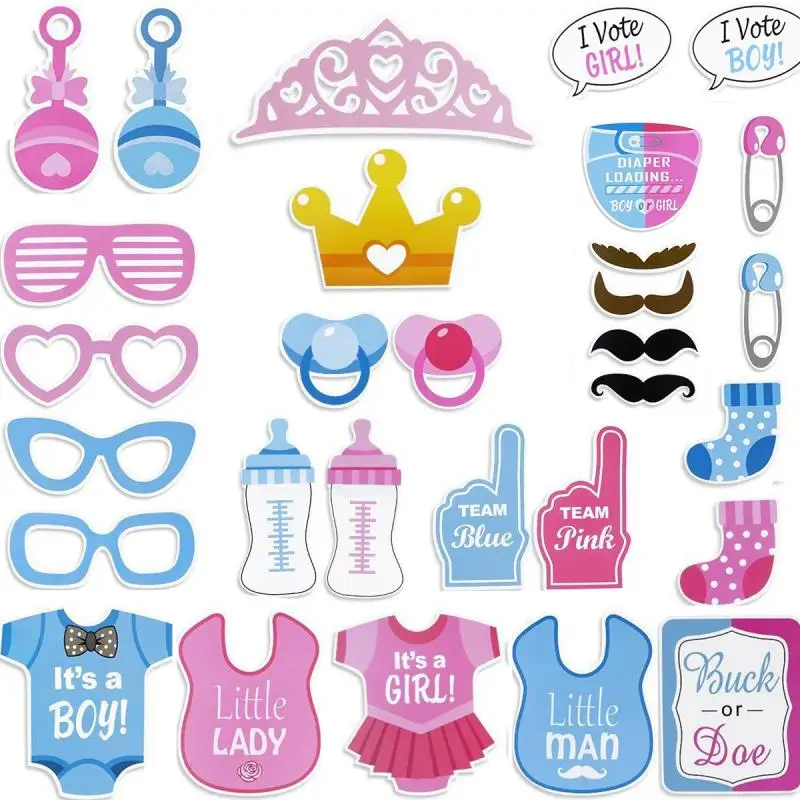 Photo Baby 30pcs DIY Photo Props BabyShow Decoration Birthday Party Kids Favors Fun Mask Photography Event Supplies