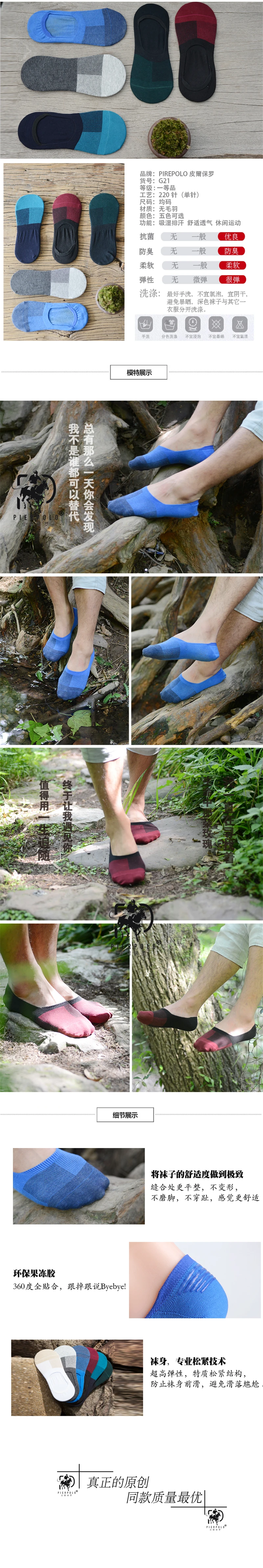 PIER POLO Mens Socks Spring Casual And Summer New Cotton Invisible Socks Breathable Men’s patchwork sluggard sock direct sale