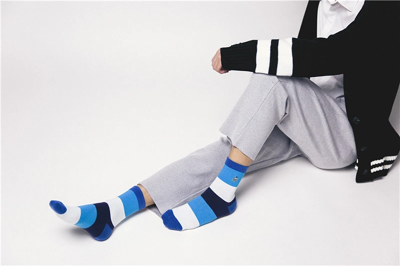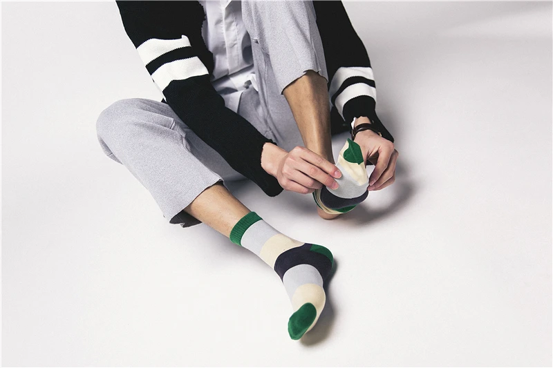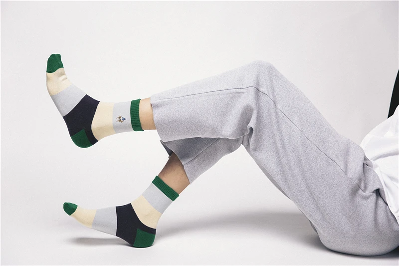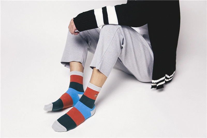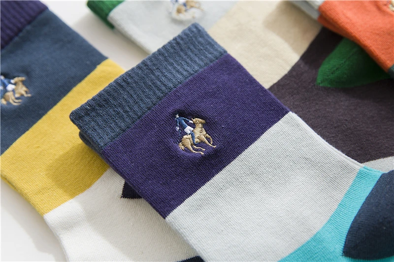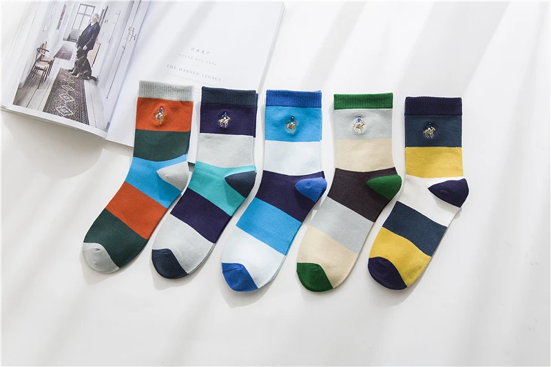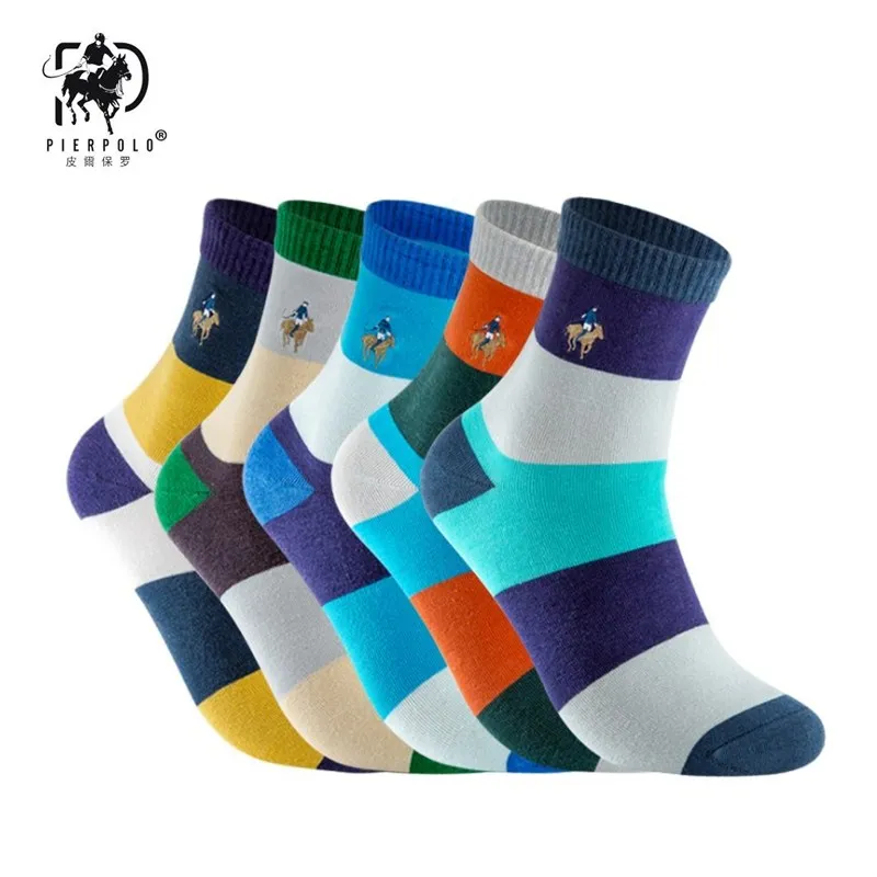 PIER POLO new men’s fashion sock spring and autumn section breathable stripes color matching socks men’s deodorant cotton socks