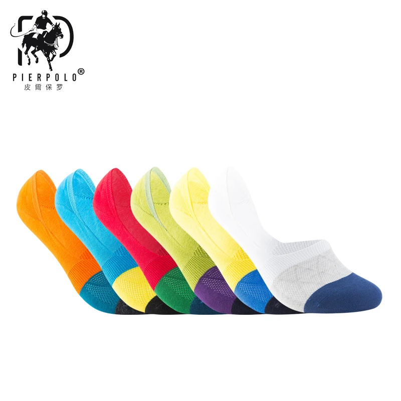 PIER POLO new men’s summer casual sock three-color striped cotton invisible socks men’s breathable wild gift socks 6 pairs / bag