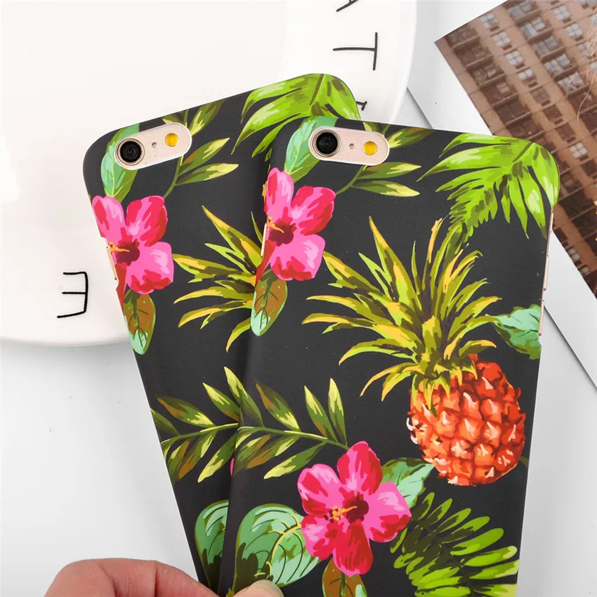 Pineapple Fish Scales Coque for iPhone SE 5s 5 Oil Painting Leaf Flower Matte Hard Plastic Cover Case For iPhone 5 5s Case Capa