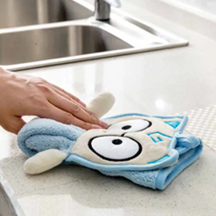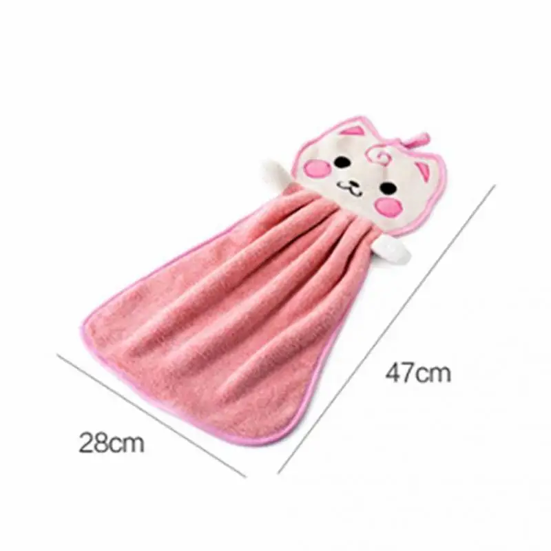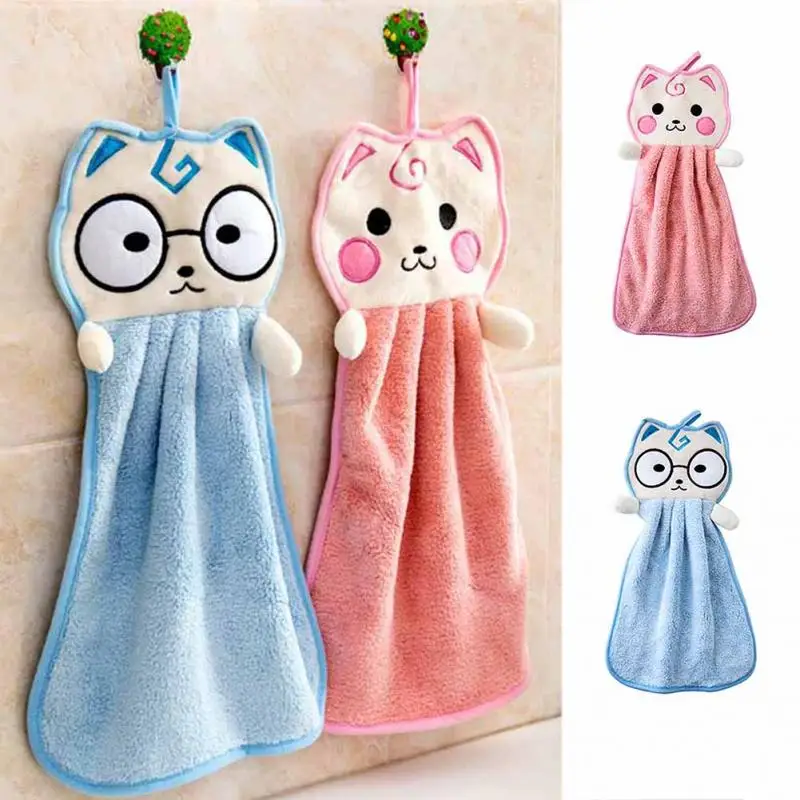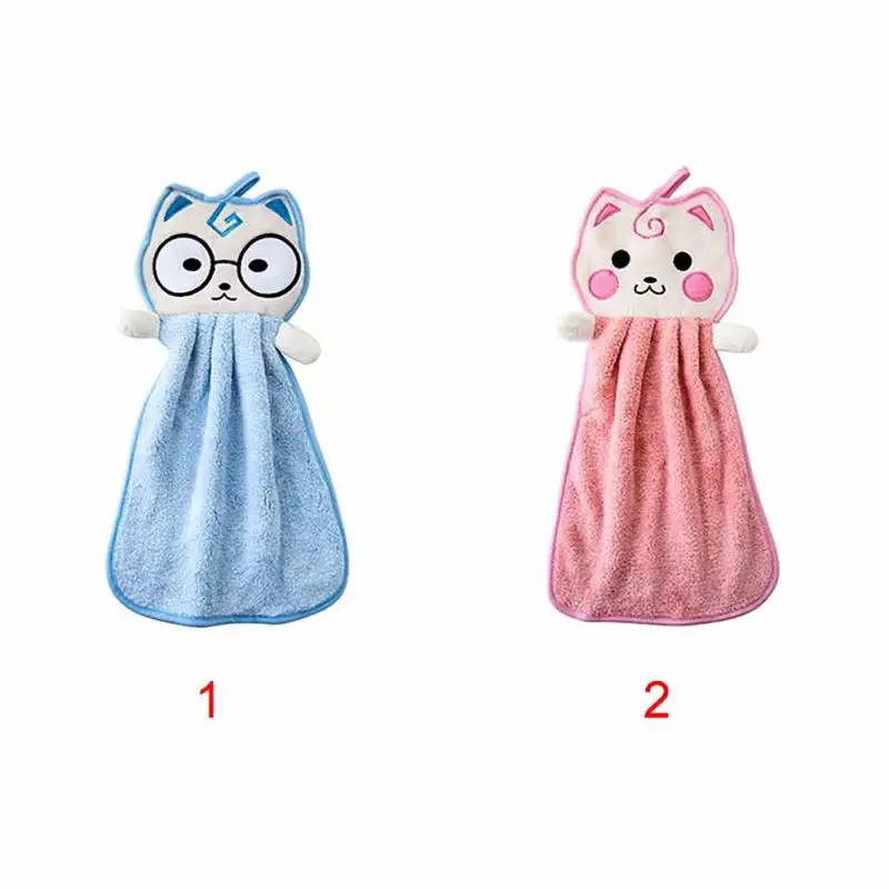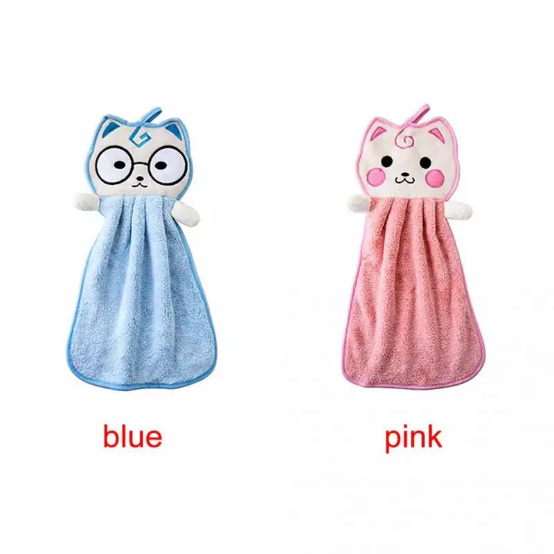 Pink Blue Cartoon Kitty Thickened Towel Superfine fiber Strong Water imbibition Hanging Hand Towel For Kitchen Bathroom Use