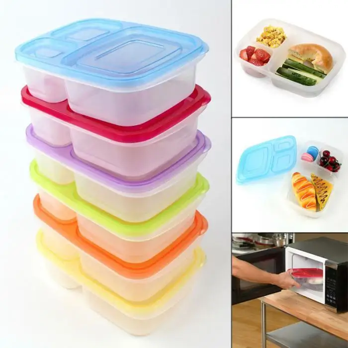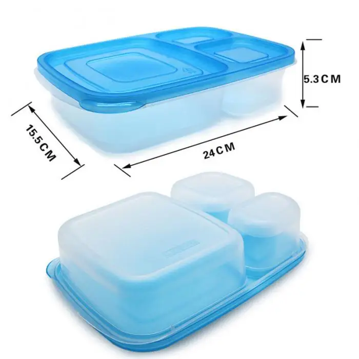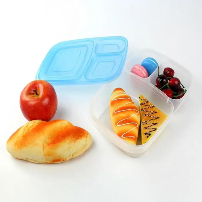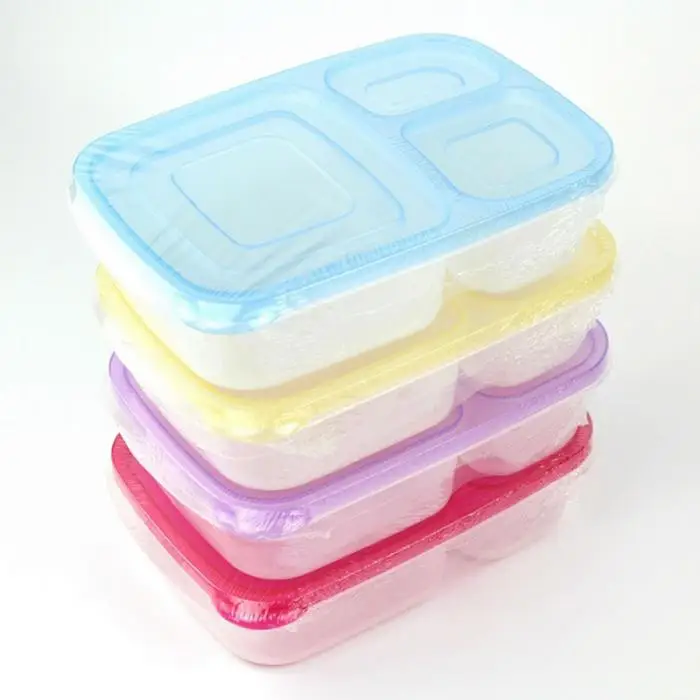 Plastic Lunch Box With Lid 3 Compartments Food Fruit Container Picnic Storage Boxes for Kids Adult 2018ing