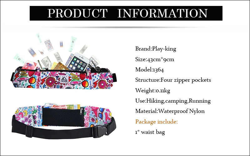 Play-king Running Bag Waterproof Running Waist Bag Fanny Pack Men Women Jogging Belt Gym Fitness Sport Bike Accessories bolsas