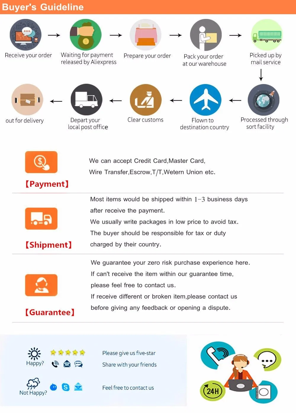 • If you did not receive the product within the guaranteed time( 45 days not including 2-5 day processing) you can request a refund or a reshipment.